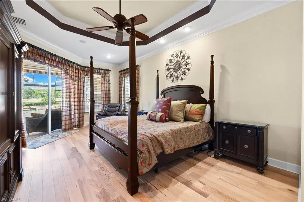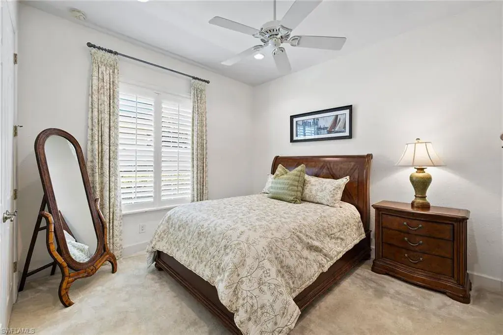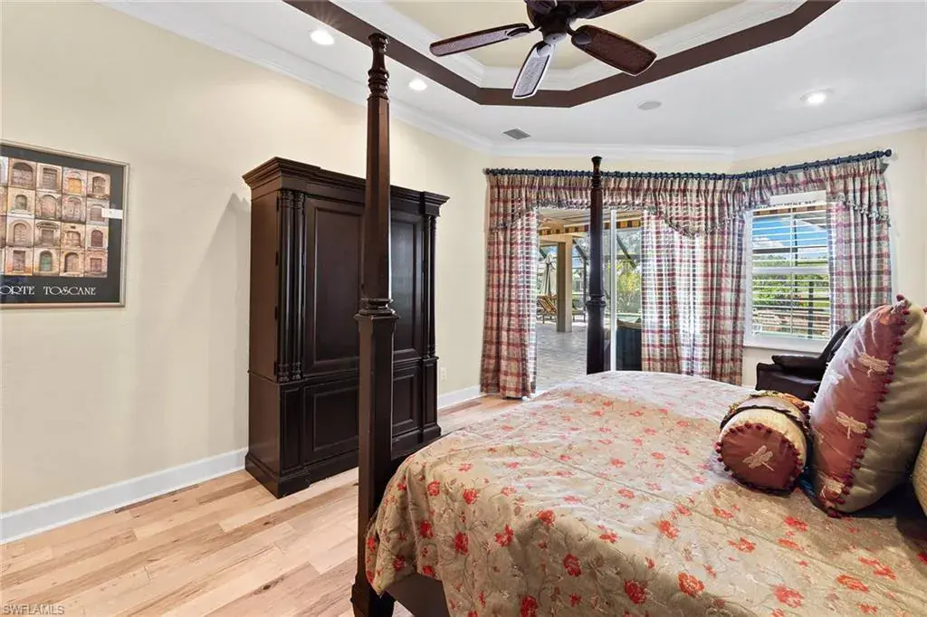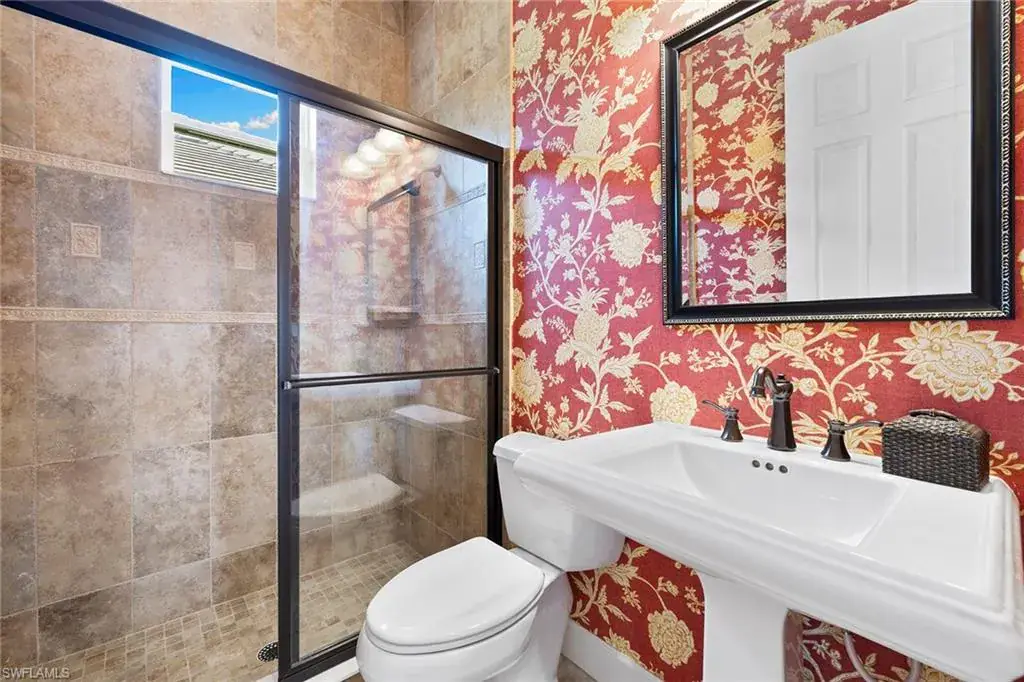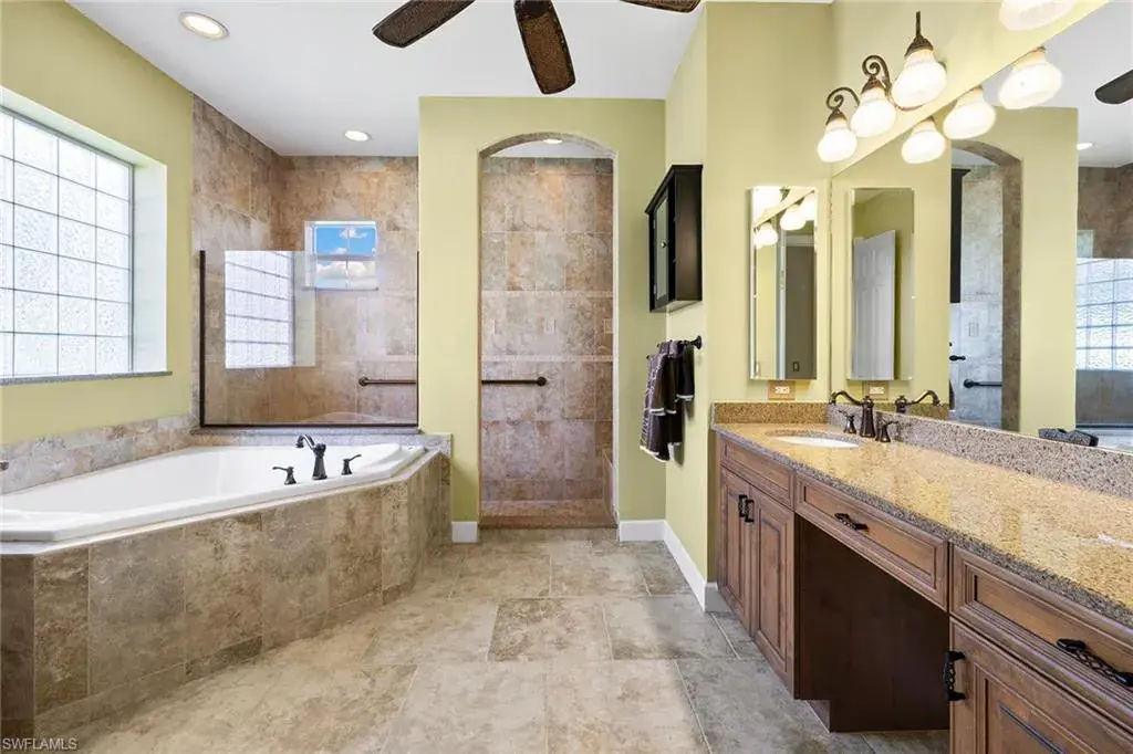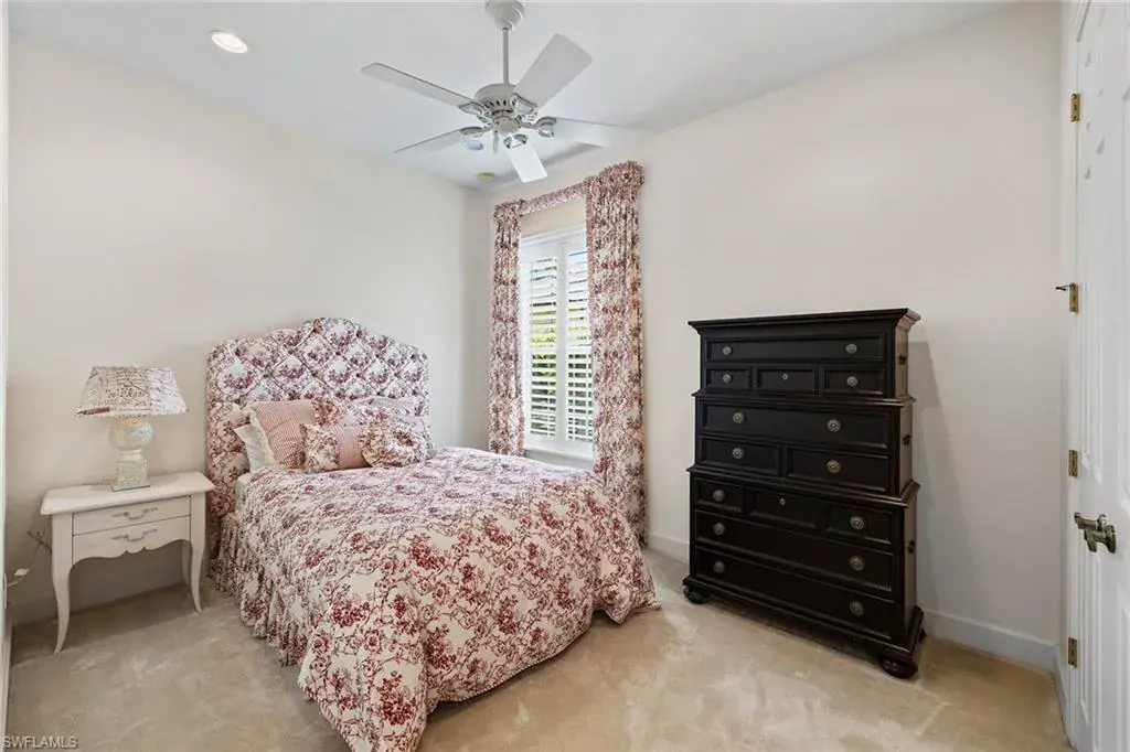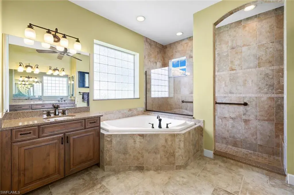 In The TwinEagles Club, a gated golf community offering 36 holes of championship golf, this residence conveys a full golf membership deeded to the property with no waitlist. The four-bedroom plus den, four-bath design spans 3,211 square feet and enjoys southwestern exposure for maximum sunshine on the pool and spa along with breathtaking sunsets. Sweeping lake, golf course and preserve views with no homes across the fairway provide exceptional privacy. The open kitchen offers an island, pantry and abundant cabinetry flowing into the family room, while formal living and dining spaces are ideal for gatherings. The primary suite features lanai access, dual walk-in closets and a spacious bath. Notable upgrades include custom built-ins, intricate coffered ceilings, and electric hurricane shutters on the lanai and front entry. A three-car garage completes this Naples property with access to golf, tennis, fitness and dining.