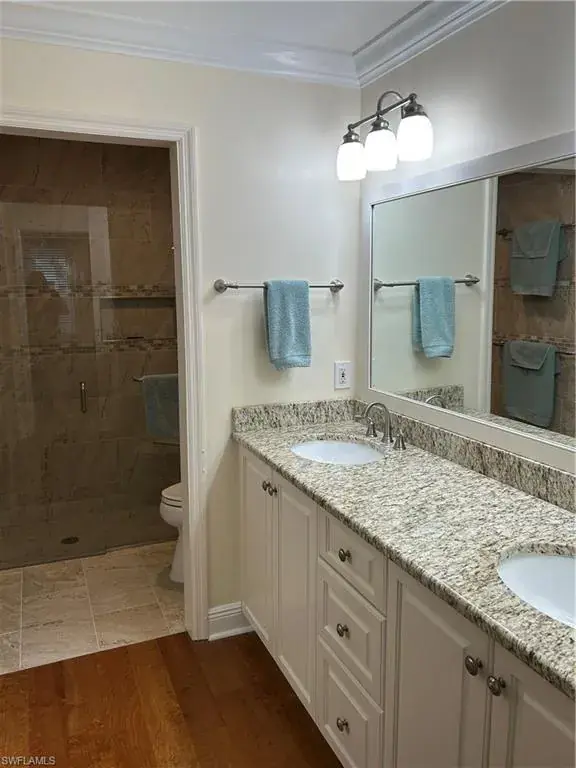 Culinary enthusiasts will love the updated kitchen, which features luxurious quartzite countertops, sleek new wood cabinetry, an efficient Bosch dishwasher, and premium stainless steel GE Profile appliances. It’s a functional space that invites both creativity and comfort. Throughout the home, enjoy the elegance of hardwood flooring, classic crown molding, and beautifully remodeled bathrooms, including the spa-like primary bath with a dual-sink vanity and a stunning frameless glass shower.