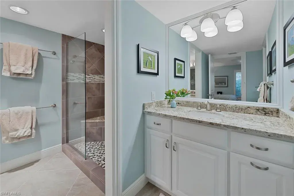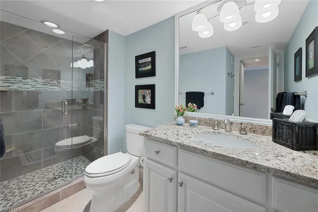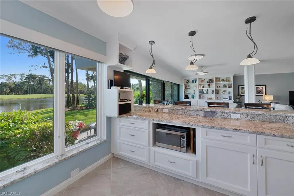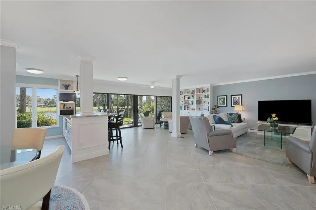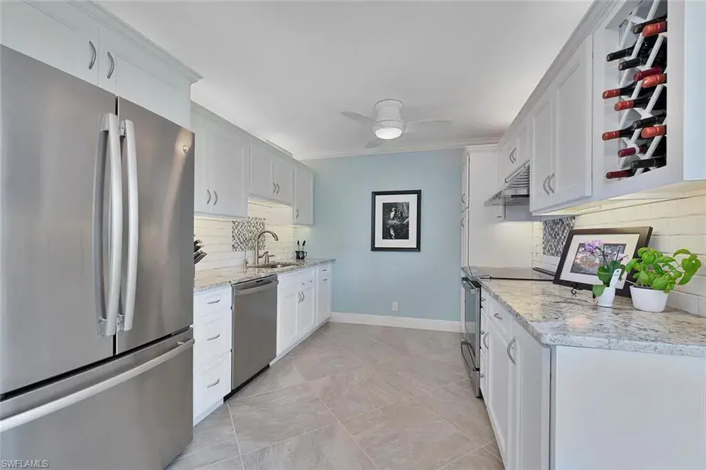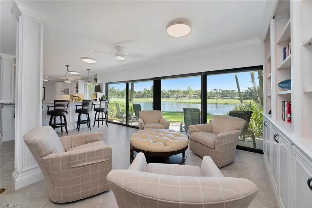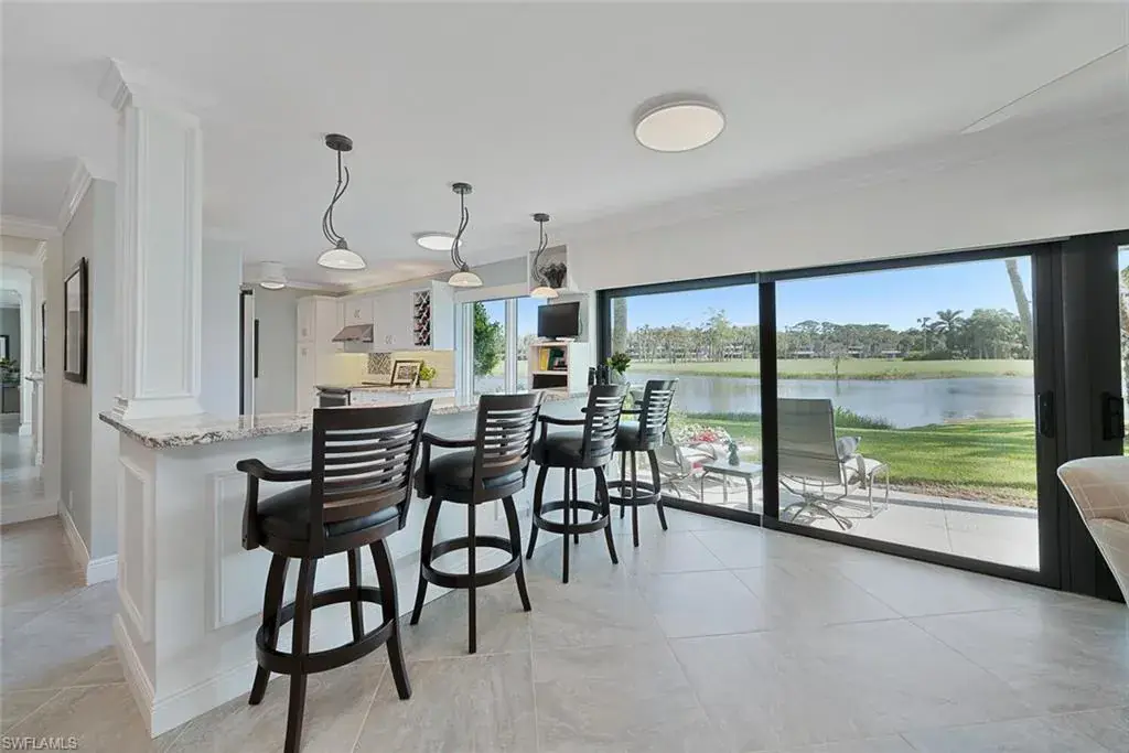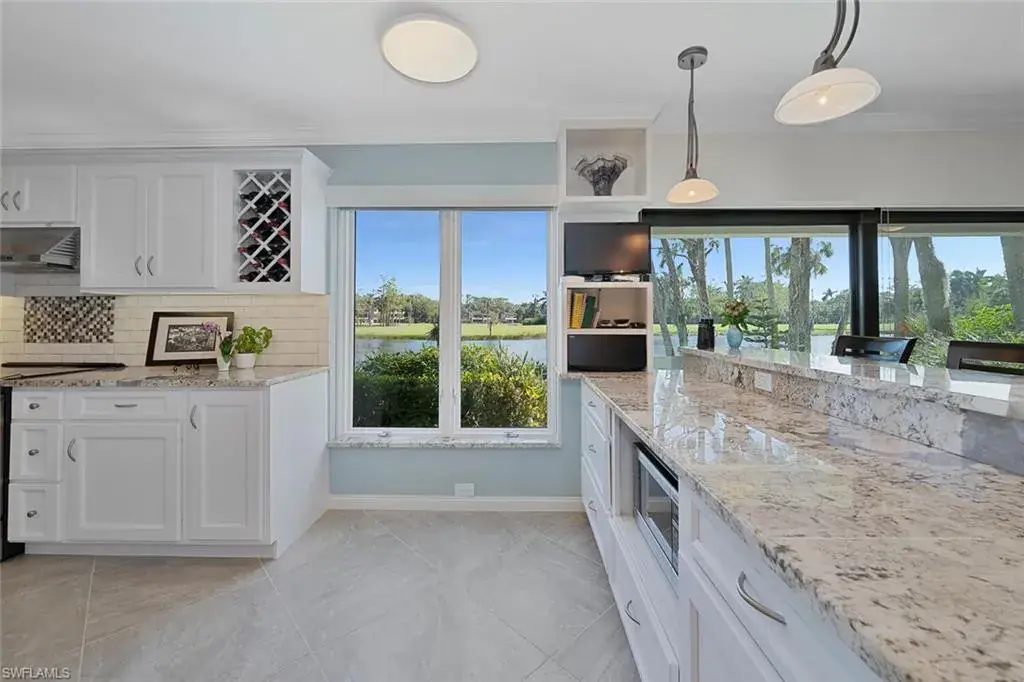 Welcome to the prestigious Wilderness Country Club, a golf course community nestled in the heart of Naples, celebrated for its outstanding service and diverse wildlife. This meticulously remodeled first-floor, 2-bedroom, 2-bath residence offers the perfect blend of Florida charm. Step outside and discover the impressive sights of the serene lake and golf course views from your private patio area surrounded by wildlife, which is perfect for viewing nature in action. Enjoy a spacious living area with new large hurricane-resident sliders that fill the space with natural light. Adjacent to this is a modern kitchen equipped with stainless steel appliances, generous cabinetry, counter space, and breakfast bar seating. Stunning oversized diagonally laid tile in every room. Updated Bathrooms with walk-in shower in Master and Guest Baths, custom cabinetry, and solid wood doors. Spacious laundry room with cabinets, laundry tub, and front loader washer and dryer. Residents will also enjoy access to the newly constructed State-of-the-Art 5 Star Clubhouse and practice facility, making this property the ultimate haven for golf enthusiasts. Golf cart and cart garage are included and located adjacent to your assigned covered car parking. This gated paradise is set within a 200-acre forest with stunning landscaping and mature trees overhanging roadways. It offers unlimited golf on an 18-hole Arthur Hills course, 5 Pools, 4 tennis courts, bocce, croquet, and a dog park. It’s just minutes from charming shopping and dining at 5th Avenue and Old Naples. Purchase of a Wilderness Country Club membership is required and immediately available.