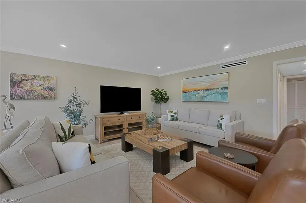 Move right into this remodeled turn-key furnished condominium contemporary residence offering breathtaking lake to green views overlooking the nine-hole. Completely redesigned with meticulous attention to detail, this home epitomizes elegance and sophistication. Immediate Full Golf Member at Wilderness with purchase of this property. Step inside to discover a light-filled open-concept floor plan featuring a gourmet kitchen with quartz countertops and a subway tile backsplash, stainless steel appliances, vinyl flooring, crown molding, and custom White Shaker Cabinetry. Electric Hurricane shutters. Residents will also enjoy access to the newly constructed State-of-the-Art 5 Star Clubhouse and practice facility, making this property the ultimate haven for golf enthusiasts. Golf cart and cart garage are included and located adjacent to your assigned covered car parking. This gated paradise is set within a 200-acre forest with stunning landscaping and mature trees overhanging roadways. It offers unlimited golf on an 18-hole Arthur Hills course, 5 Pools, 4 tennis courts, bocce, croquet, and a dog park. It’s located just minutes away from charming shopping and dining at 5th Avenue and Old Naples. Purchase of a Wilderness Country Club membership is required and immediately available.