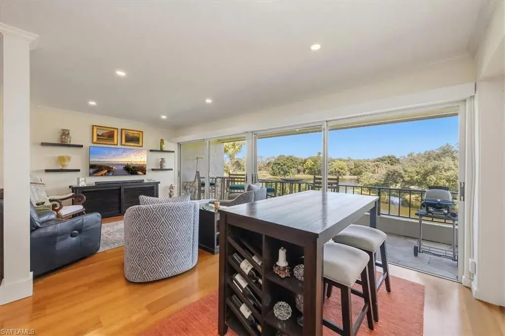 Perfect Naples Golf Getaway! Enjoy immediate full golf membership at Wilderness Country Club with the purchase of this top-floor 2-bedroom, 2-bath updated condominium in an elevator building. This light-filled residence features stunning northern exposure with picturesque lake-to-golf course views in every direction. This updated unit showcases a gourmet kitchen with quartz countertops and backsplash, white Shaker cabinetry, neutral finishes, and a custom built-in desk—perfect for today’s lifestyle. Steps away from the tropical pool setting. Additional highlights include a fantastic golf cart, a dedicated golf cart storage area with custom cabinetry. Residents have exclusive access to the newly constructed state-of-the-art 5-star Clubhouse and practice facility, making this property a golfer’s paradise. A golf cart and dedicated cart garage are included, conveniently located next to your assigned covered parking. Set within a stunning 200-acre gated community, you’ll enjoy beautifully landscaped grounds and mature trees lining the roads. This community offers unlimited golf on an 18-hole Arthur Hills course, as well as five inviting pools, four tennis courts, bocce, croquet, and a dog park. This condo is a true gem, just minutes from the vibrant shopping and dining of 5th Avenue and Old Naples. Purchase of a Wilderness Country Club membership is required and immediately available, offering you an effortless transition into this luxurious lifestyle.