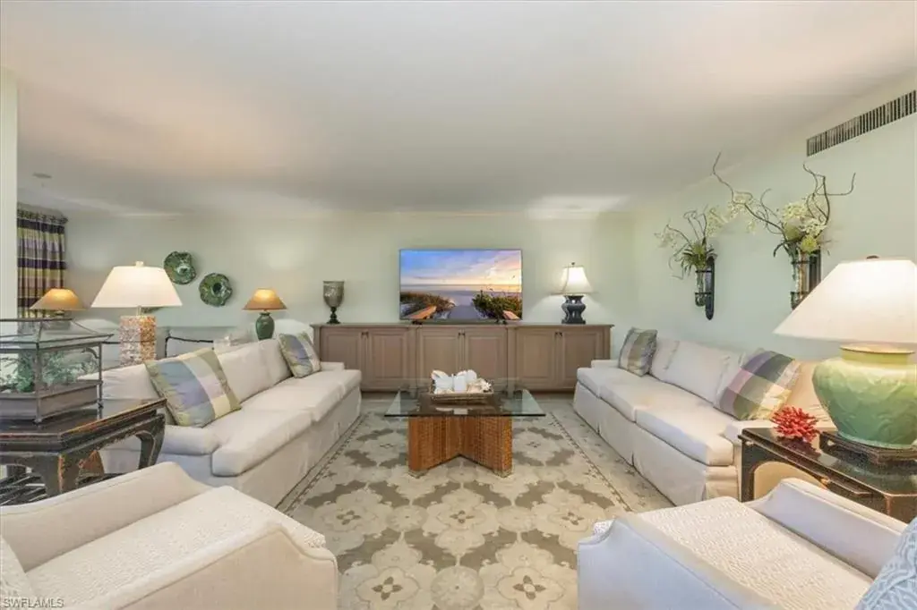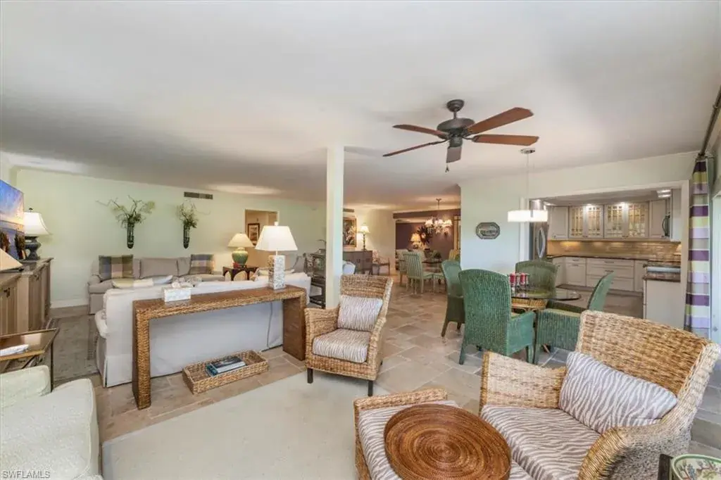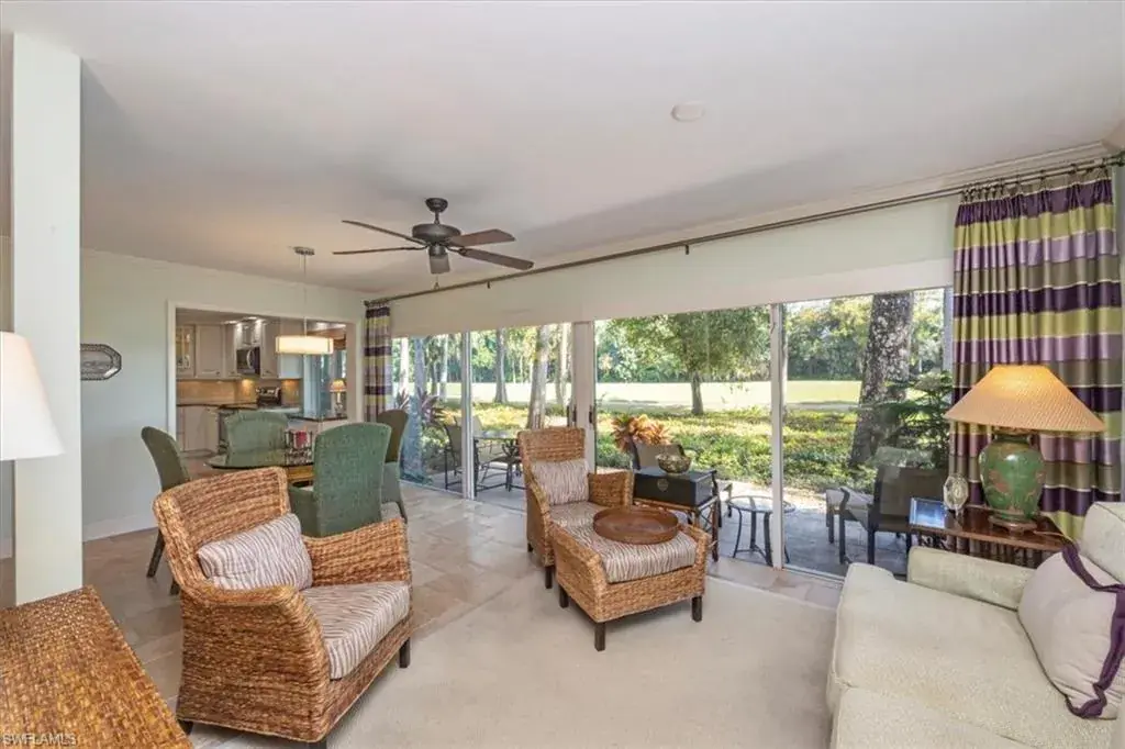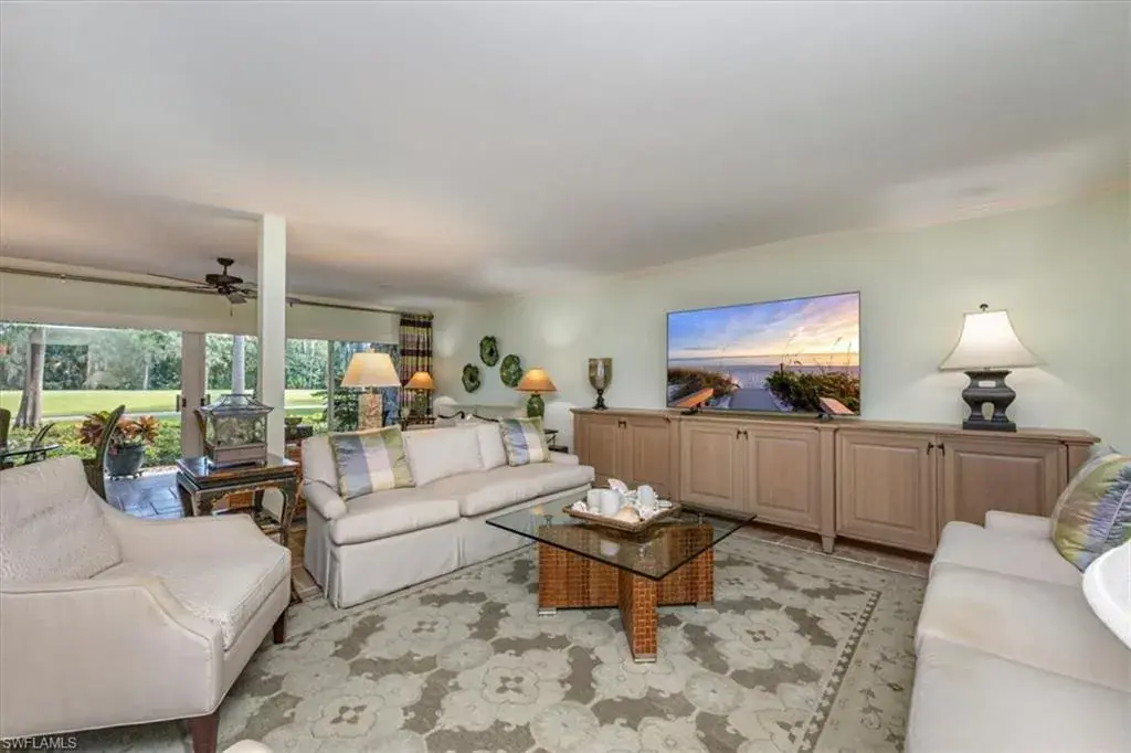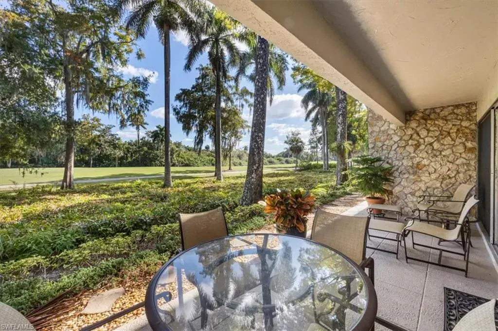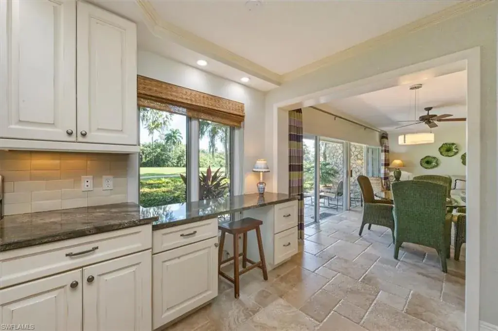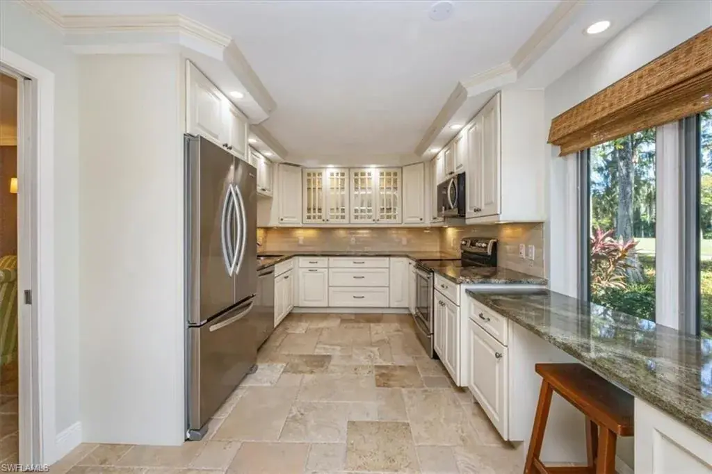 Welcome to the prestigious Wilderness Country Club—a premier golf community in the heart of Naples, known for its exceptional service, lush natural surroundings, and abundant wildlife. This meticulously remodeled first-floor residence features two bedrooms and two full baths, offering the perfect blend of modern luxury and Florida charm. Enjoy picturesque golf course views right from your private patio—an ideal spot to relax, entertain, and appreciate the peaceful beauty of nature. Inside, the light-filled open-concept floor plan highlights a stunning gourmet kitchen with upgraded granite countertops and backsplash, custom built-ins, ivory raised-panel cabinetry, and stylish light luxury tile flooring. Additional enhancements include impact-rated sliders and tastefully neutral finishes for a bright, timeless aesthetic. The spacious primary suite is a true retreat—boasting an expansive spa-like bathroom with custom built-in cabinetry, a beautifully tiled walk-in shower with seamless glass, impressive lighting, and a full-size laundry room for added convenience. This condominium includes your own golf cart and a private golf cart garage located adjacent to your reserved covered parking space. This gated paradise is an Audubon Cooperative Sanctuary set within a 200-acre forest with stunning landscaping and mature trees overhanging roadways. Wilderness Country Club offers a spectacular state-of-the-art clubhouse, driving range and practice green, 5 saltwater pools, 4 Har Tru tennis courts, bocce courts, croquet, and a dog park. It is located minutes away from charming shopping and dining at 5th Avenue and Old Naples and a mile to white sand beaches. Purchase of a Wilderness Country Club membership is required and immediately available.