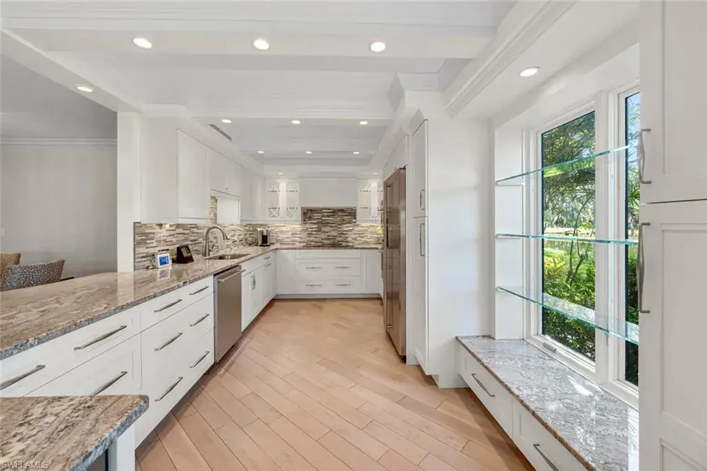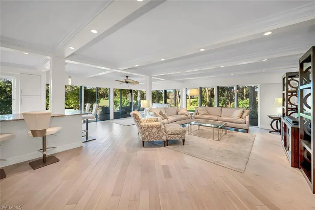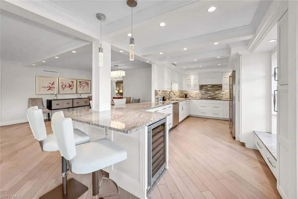 Step into luxury living in this stunning condominium by renowned developer Jim Madsen of Sand Spring Development. This elegant and contemporary home is filled with abundant natural light thanks to its glass wraparound sliding doors. Enjoy the outdoors on your private patio, surrounded by lush trees and plants that provide complete privacy. The patio offers ample dining and entertaining space and a secluded grilling area with direct green views. This residence features diagonally laid wood flooring, white raised custom cabinetry, sliding drawers, granite countertops, a wine cooler, plantation shutters, crown molding throughout and impressive light fixtures. Residents will also enjoy access to the newly constructed State-of-the-Art 5 Star Clubhouse and practice facility, making this property the ultimate haven for golf enthusiasts. The golf cart and cart garage are included and adjacent to your assigned covered car parking. This gated paradise is set within a 200-acre forest with stunning landscaping and mature trees overhanging roadways. It offers unlimited golf on an 18-hole Arthur Hills course, 5 Pools, 4 tennis courts, bocce, croquet, and a dog park. It’s just minutes from charming shopping and dining at 5th Avenue and Old Naples. Purchase of a Wilderness Country Club membership is required and immediately available.