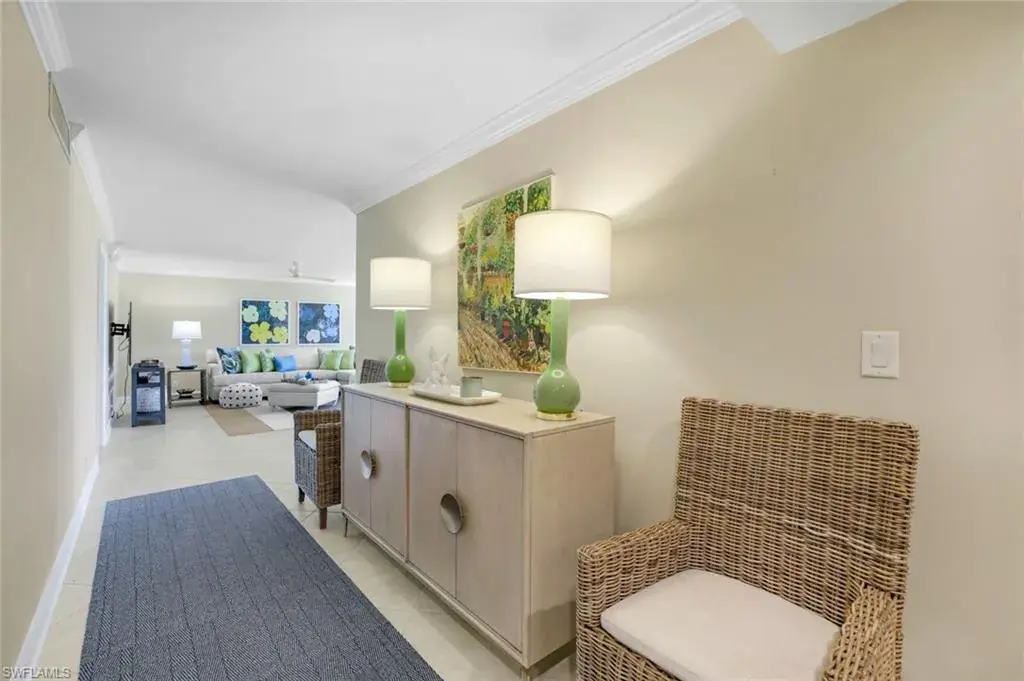 Perfect Timing! BEST VALUE WITH IMMEDIATE GOLF PRIVILEGES! Wilderness Country Club is a tranquil tropical retreat that captures the essence of “Old Florida” charm, the perfect blend of luxury and seclusion. This 2 Bedroom PLUS Den/Flex room is ready for immediate occupancy and tastefully renovated! Join one of Naples hidden gems at the Wilderness Country Club with no waiting lists and immediately play this gorgeous Arthur Hills designed 18-hole masterpiece offering driving range and practice green. Nestled in the heart of Naples, this updated first floor condo has amazing views of the lake and the 18th fairway. Your private patio with a Western exposure will provide you with awe inspiring sunsets while enjoying the serene landscaping and abundant wildlife. This light and bright residence has a beautifully appointed kitchen with solid wood cabinetry, stainless steel appliances and a single temperature Eurocave 84 bottle wine cooler with two larger shelves for Magnum bottles. Newer HVAC and tankless HWH brings peace of mind. Convenient assigned covered parking is included as well as a golf cart with its own garage. Residents enjoy the newly built 5 Star clubhouse with indoor and outdoor dining. The Library/Card room is waiting for you to pick up a new read, play bridge or join a spirited game of Mahjong. This pet friendly community also features 5 heated saltwater pools, 4 lighted Har-Tru tennis courts, Pop-Tennis leagues, Bocce Courts, Croquet Lawn and Dog Park. Only 4 miles away is the USOP National Pickleball Center featuring 65 courts, pro shop and lessons. Fitness buffs enjoy special membership privileges at the Briggs Wellness Center 2.8 miles away. Located minutes from world famous 5th Ave/3rd Street, Venetian Village, Waterside Shoppes, Mercato and Naples pristine beaches! This amazing and luxurious lifestyle ownership opportunity makes Wilderness Golf Club one of Naples most unique golfing communities.