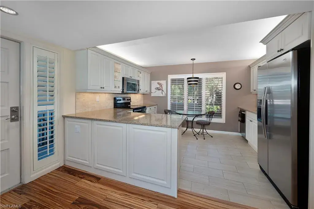Motivated Seller, Bring Offers! Welcome to Wilderness Country Club, your paradise in the heart of Naples. Overlooking the picturesque 18th fairway, this 2-bedroom/2-bathroom unit is perfect for those seeking convenience and proximity to Wilderness’ ultimate amenities. Experience the luxury of Wilderness Country Club, a sanctuary of elegance and exclusivity. Gain immediate golf membership with no waiting list and have access to unlimited golf on an 18-hole Arthur Hills course. This unique and spacious, over 1900 sf, open plan second-floor condominium is located in close proximity to the clubhouse, 1st tee, and saltwater pool. It features expansive front-to-back views, giving the unit beautiful natural light throughout the day. The updated kitchen is outfitted with custom white raised cabinetry, neutral-toned quartz countertops, stainless steel appliances, and plantation shutters. The primary suite has a full walk-in closet, dressing area with makeup bar/office space, and a full bathroom with double sink vanity, oversized soaking tub, and walk-in shower. The guest bedroom and full guest bathroom includes an oversized vanity and tub/shower combo. Both bedrooms access the den/lanai and patio overlooking a stunning pond teeming with wildlife and views across the 18th fairway and up to the new clubhouse. This condominium, in an elevator building, includes your own golf cart and a private golf cart garage located adjacent to your reserved covered parking space. This gated paradise is an Audubon Cooperative Sanctuary set within a 200-acre forest with stunning landscaping and mature trees overhanging roadways. Wilderness Country Club offers a spectacular state-of-the-art clubhouse, driving range and practice green, 5 saltwater pools, 4 Har Tru tennis courts, bocce courts, croquet, and a dog park. It is located minutes away from charming shopping and dining at 5th Avenue and Old Naples and a mile to white sand beaches. Purchase of a Wilderness Country Club membership is required and immediately available.