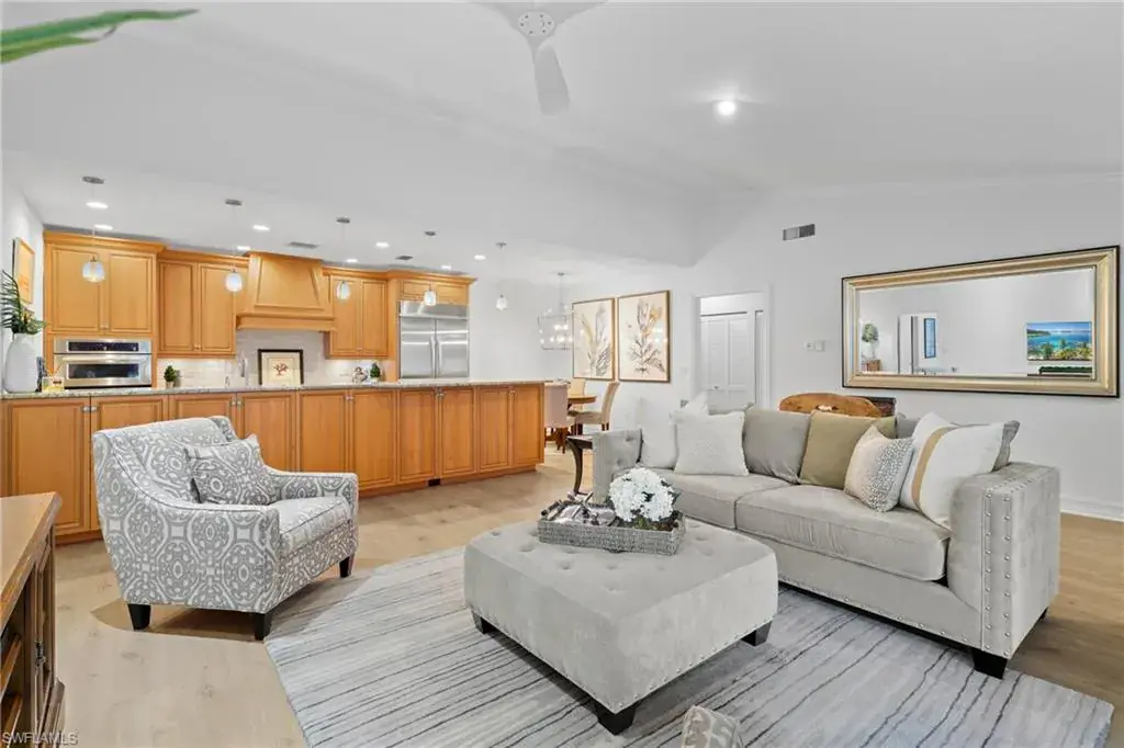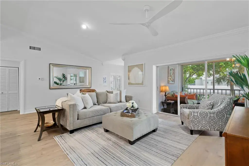 LIVE A VACATION LIFESTYLE IN PELICAN BAY! This immaculate and updated TURNKEY 2 Bedroom, 2 Bathroom second floor end unit coach home is tucked away in the quaint Willow Brook section of the beachfront community of Pelican Bay. Located just steps away from the community pool, this spacious condo features an impressive open concept layout with vaulted ceilings, enclosed lanai, and two bedroom suites. A long list of special features and upgrades include: fresh paint top to bottom; new lights & fans; custom kitchen including an abundance of cabinetry/storage with pull outs, water filtration system, and KitchenAid appliances including built-in refrigerator/freezer, wall oven, & drop in cooktop with hood; remodeled primary bathroom with dual sinks, soaking tub, and walk-in shower with frameless glass enclosure; wood look Luxury Laminate flooring throughout the living areas and plush carpet in the bedrooms; primary bedroom closet cabinets; plantation shutters; Kohler fixtures; crown molding; newer HVAC; newer Washer/Dryer; and more! Pelican Bay offers a lifestyle like no other with TWO private beach clubs right on the sand with chair/umbrella service, beach bars, restaurants. The private Pelican Bay foundation offers an impressive fitness center, social activities, 26 tennis courts, 20 pickleball courts, and more! Known for its miles of immaculate beach, coastal mangrove forests and breathtaking nature paths, Pelican Bay is Naples’ premier mixed-use beachfront community, offering its members a preeminent lifestyle that cannot be found elsewhere Florida. Pelican Bay sets the bar when it comes to its luxury living with exclusive amenities including private beachfront restaurants, beach services, tennis courts and pro shops, full service fitness center, community center, canoes and kayaks, sailing, wellness studio and nutrition and health services.