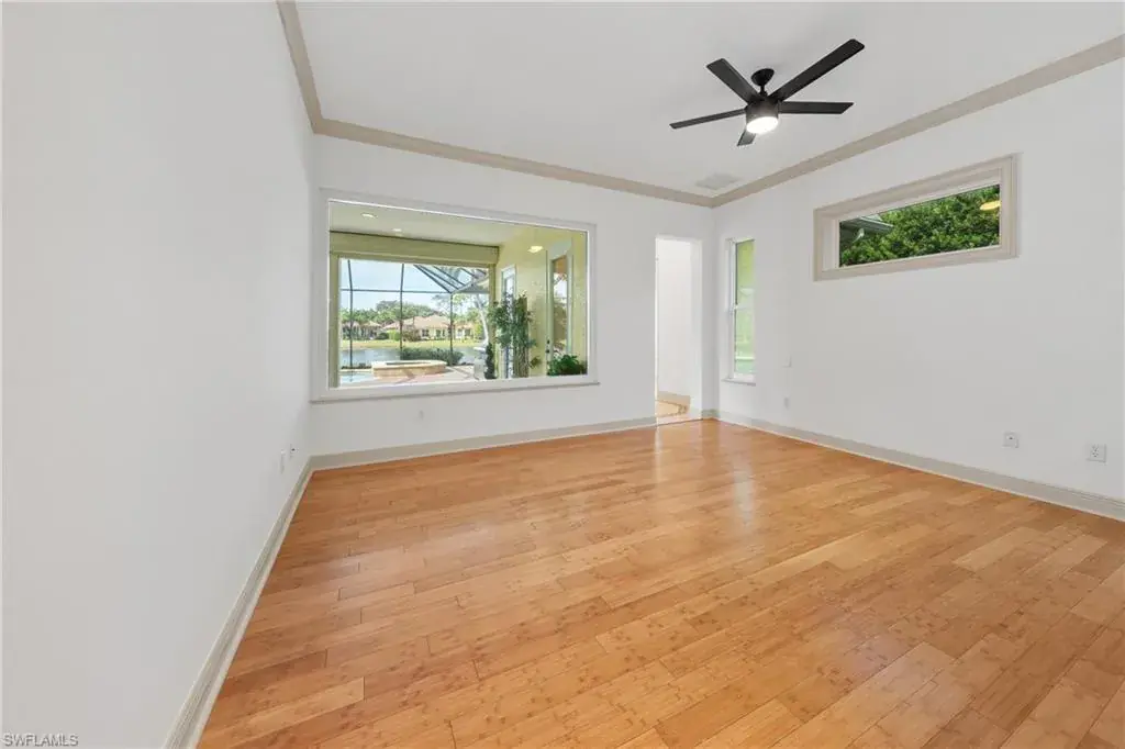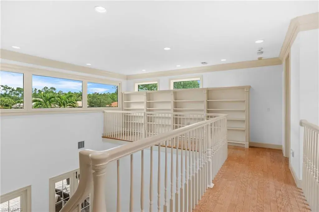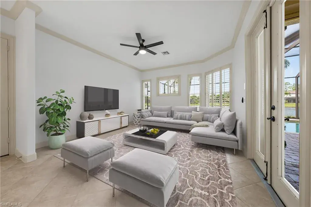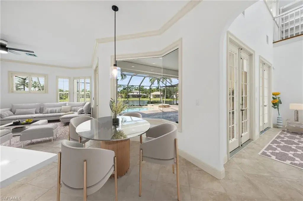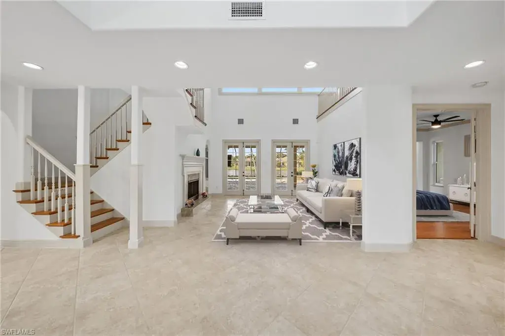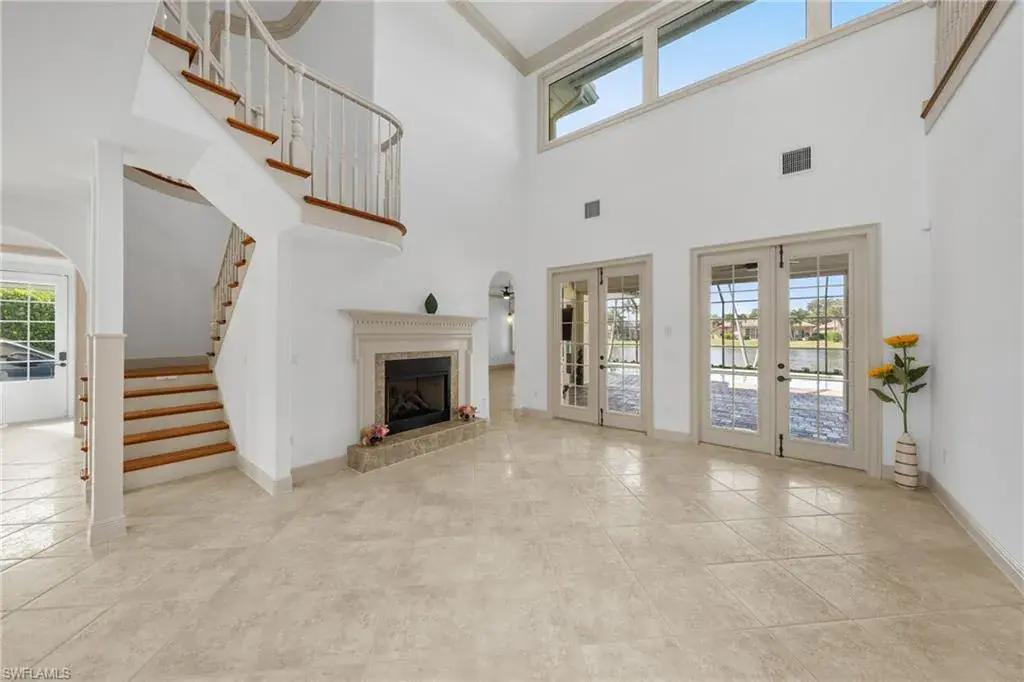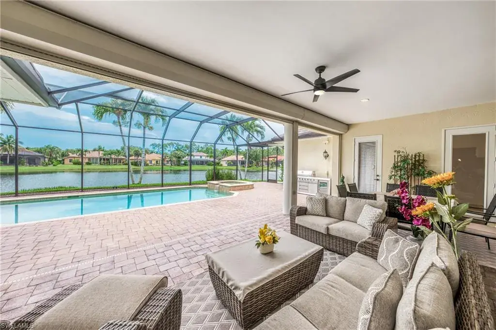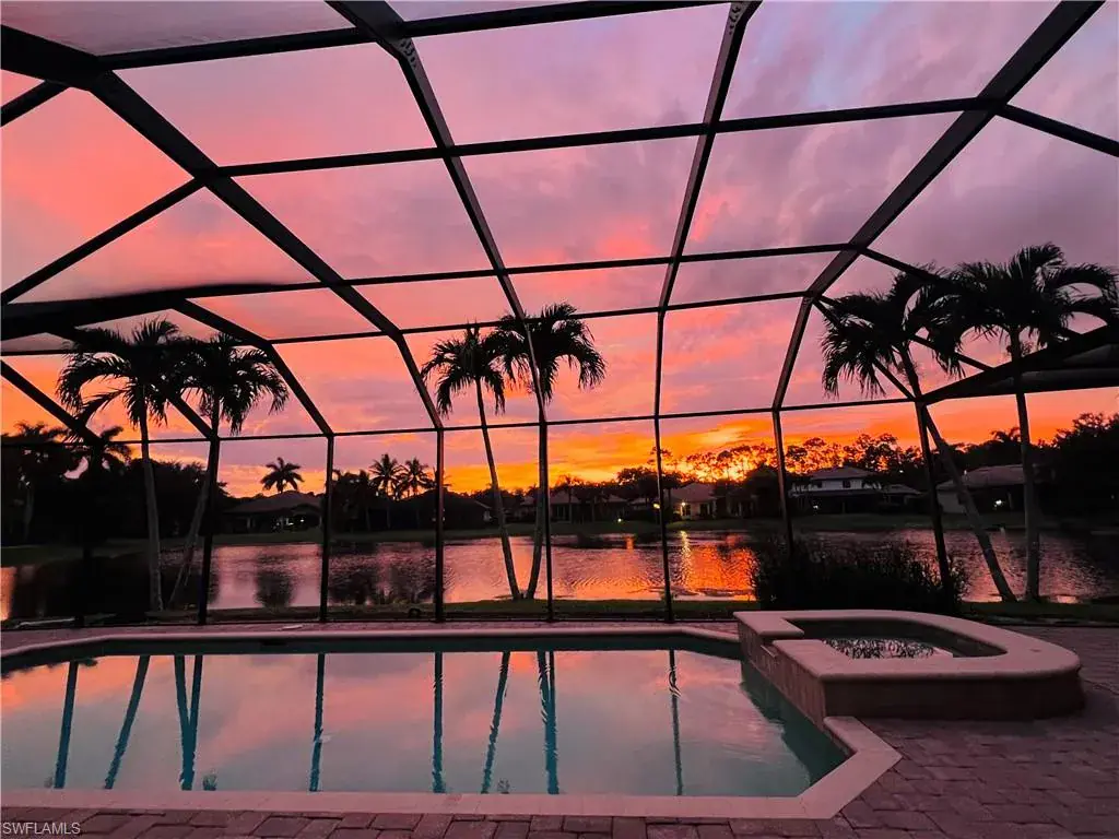 The ultimate in Naples and Florida living is ready for you. Boasting nearly 3,600 sq. ft. of living space and 4,744 total construction including the 3 car garage, this rarely available 2-story concrete block residence with plenty of natural light, offers 4 bedrooms + den/ 5th bedroom connected to full bath. There are 4.5 baths in total, including pool bath. This home represents an exceptional market value, priced below recent appraisals and comparable sales, offering buyers a rare opportunity to own a property enhanced by hundreds of thousands of dollars in thoughtful upgrades. The heated saltwater system pool, jacuzzi, 3-car garage, and cul-de-sac location provide both luxury and privacy, while direct access to North Collier Park and top-rated schools make this ideal for families. No detail was overlooked: new light fixtures, fresh paint, and modern upgrades enhance every corner of this stunning property from top to bottom. The grand foyer with soaring ceilings leads to the formal living area, while all new impact-resistant doors and windows ensure peace of mind. A newer 24kW Generac whole-house generator with a 500-gallon underground LP tank offers up to 5 days of backup power. The chef’s kitchen features newer LG stainless steel appliances (under extended warranty), gorgeous and brand new quartz counters, a large walk-in pantry, and chic functional style. In the North wing, the first-floor primary suite is a true retreat, with a double vanity, double walk-in closets, separate tub and walk-in shower with double shower heads, and private access to the enclosed lanai, also, the den/office, large formal dining room, formal living room and a family room. Upstairs, two guest bedrooms share a Jack-and-Jill bath, and an ensuite offers abundant natural light and privacy, along with a custom built-in bookshelf for the avid reader. Resort-style living continues outdoors with 145 feet of west-facing water views, a saltwater pool and spa, built-in outdoor kitchen with 8-burner gas/charcoal grill and refrigerator, powder room, and covered lanai perfect for entertaining. The 3-car garage includes epoxy flooring, AC, and extra storage. Additional upgrades include brand new LG washer/dryer, whole-house spring water reverse osmosis filtration and UV system, 2023 HVAC system, and a 2019 Tile Roof, fountain, paved circular driveway, automatic irrigation system, automatic front door, and lanai patio hurricane roll down shutters. Wilshire Lakes offers the ultimate in luxury, man-guarded 24 hours security gate, located less than 6 miles from the pristine white-sand Naples beaches, nearby shopping, fine dining, entertainment, west of I-75, rate A school zone and much more… —this home is truly a gem!