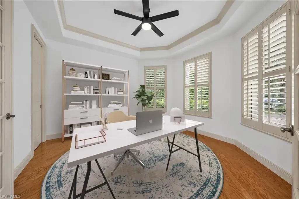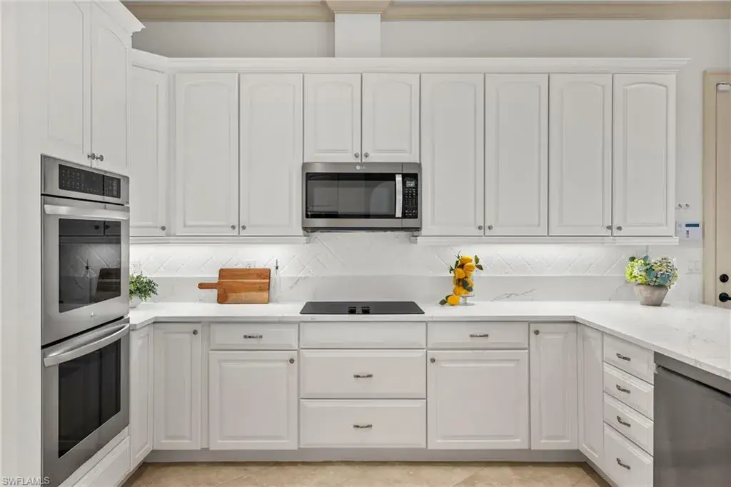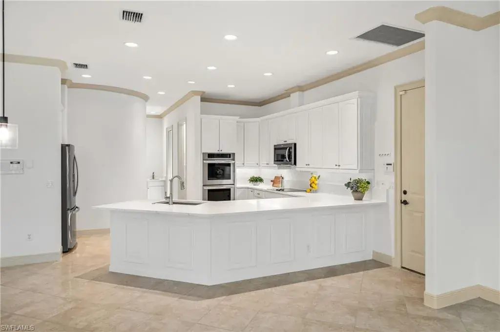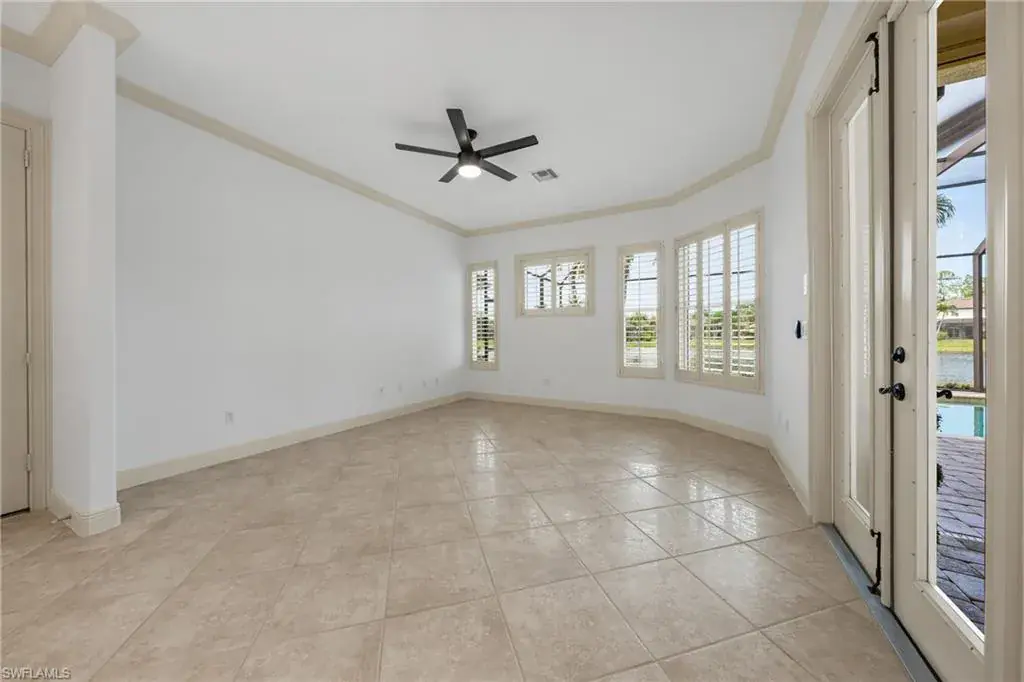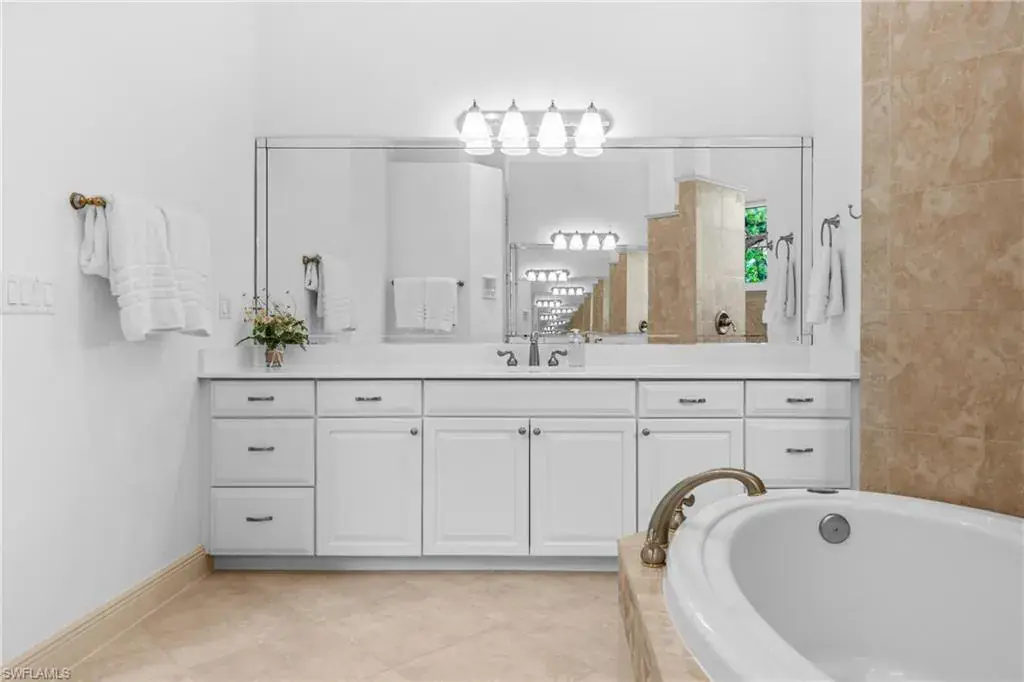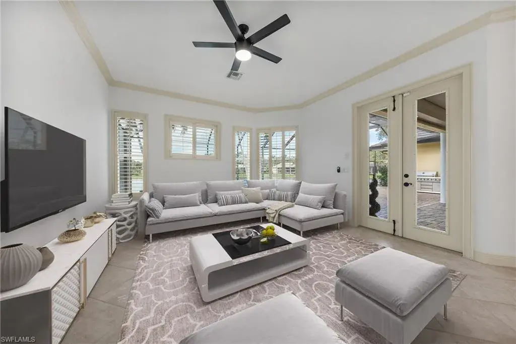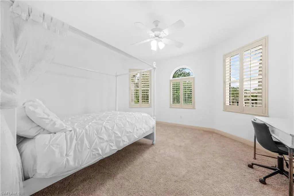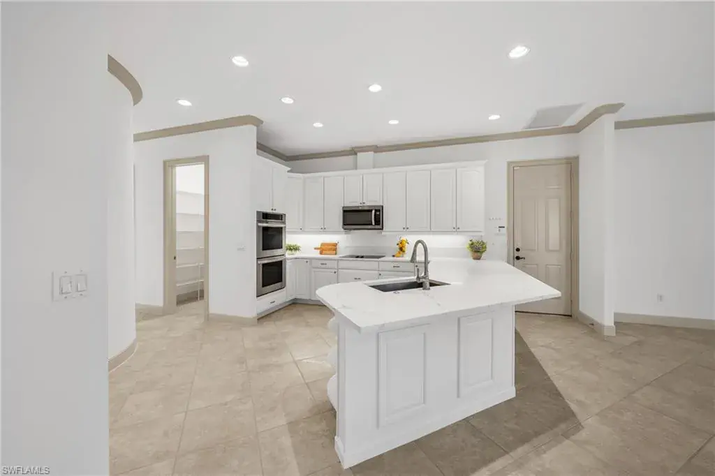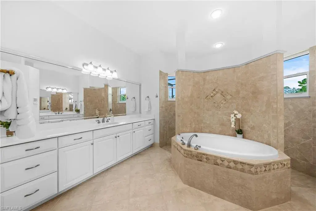 The ultimate in Naples and Florida living is ready for you. Boasting nearly 3,600 sq. ft. of living space and 4,744 total construction including the 3 car garage, this rarely available 2-story concrete block residence with plenty of natural light, offers 4 bedrooms + den/ 5th bedroom connected to full bath. There are 4.5 baths in total, including pool bath. This home represents an exceptional market value, priced below recent appraisals and comparable sales, offering buyers a rare opportunity to own a property enhanced by hundreds of thousands of dollars in thoughtful upgrades. The heated saltwater system pool, jacuzzi, 3-car garage, and cul-de-sac location provide both luxury and privacy, while direct access to North Collier Park and top-rated schools make this ideal for families. No detail was overlooked: new light fixtures, fresh paint, and modern upgrades enhance every corner of this stunning property from top to bottom. The grand foyer with soaring ceilings leads to the formal living area, while all new impact-resistant doors and windows ensure peace of mind. A newer 24kW Generac whole-house generator with a 500-gallon underground LP tank offers up to 5 days of backup power. The chef’s kitchen features newer LG stainless steel appliances (under extended warranty), gorgeous and brand new quartz counters, a large walk-in pantry, and chic functional style. In the North wing, the first-floor primary suite is a true retreat, with a double vanity, double walk-in closets, separate tub and walk-in shower with double shower heads, and private access to the enclosed lanai, also, the den/office, large formal dining room, formal living room and a family room. Upstairs, two guest bedrooms share a Jack-and-Jill bath, and an ensuite offers abundant natural light and privacy, along with a custom built-in bookshelf for the avid reader. Resort-style living continues outdoors with 145 feet of west-facing water views, a saltwater pool and spa, built-in outdoor kitchen with 8-burner gas/charcoal grill and refrigerator, powder room, and covered lanai perfect for entertaining. The 3-car garage includes epoxy flooring, AC, and extra storage. Additional upgrades include brand new LG washer/dryer, whole-house spring water reverse osmosis filtration and UV system, 2023 HVAC system, and a 2019 Tile Roof, fountain, paved circular driveway, automatic irrigation system, automatic front door, and lanai patio hurricane roll down shutters. Wilshire Lakes offers the ultimate in luxury, man-guarded 24 hours security gate, located less than 6 miles from the pristine white-sand Naples beaches, nearby shopping, fine dining, entertainment, west of I-75, rate A school zone and much more… —this home is truly a gem!