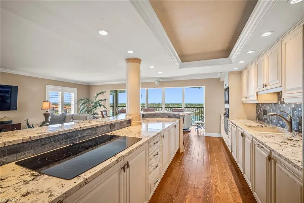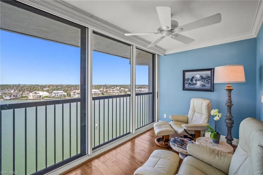 Live the ultimate coastal lifestyle in this beautifully updated end-unit penthouse condo in sought-after Windemere at The Moorings. Offering over 1,900 square feet of bright, open living space, this 3-bedroom, 2-bath residence is a rare find. Rich wood flooring flows through the main living areas, complemented by plantation shutters and crown molding for a touch of elegance. The spacious kitchen is a standout, featuring granite countertops, an abundance of cabinetry, and a circular breakfast bar. Plush carpeting enhances the cozy ambiance in both bedrooms. The expansive primary suite includes a custom walk-in closet and a beautifully updated ensuite bath with two separate vanities and a tiled walk-in shower. The 3rd bedroom, framed by French doors, offers built-in desks and Murphy bed, ideal for a home office, flex space or guest room. The guest bath is equally impressive in both design and finish. Enjoy breathtaking views from the glass-enclosed and screened balcony overlooking tranquil Moorings Bay or from the second open-air balcony showcasing Gulf views and stunning sunsets. Additional highlights include a dedicated carport space and access to the Windemere amenities, including a sparkling community pool, dock lease options, and direct beach access. This exclusive location in The Moorings places you minutes from Naples’ premier shopping, dining, and entertainment. Experience refined waterfront living at its finest.