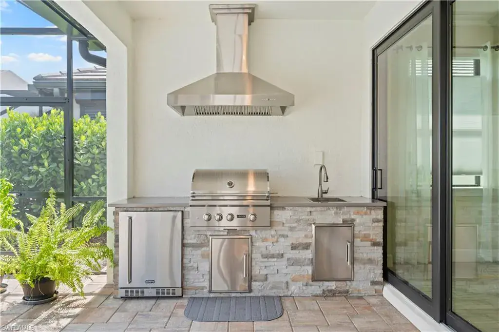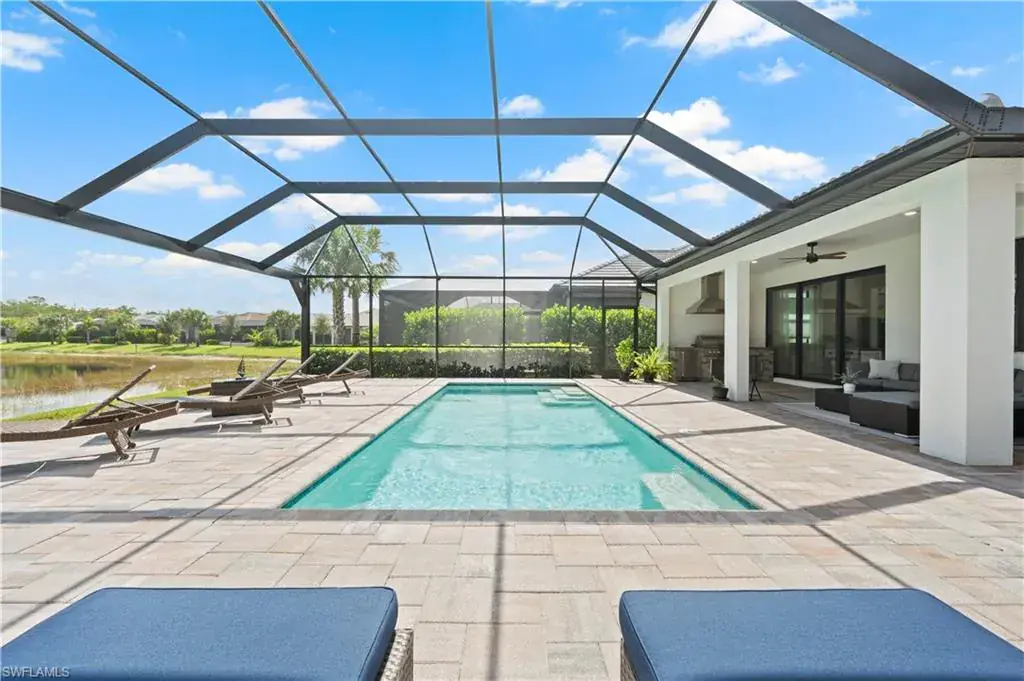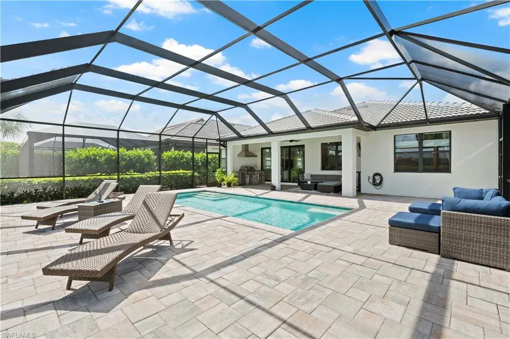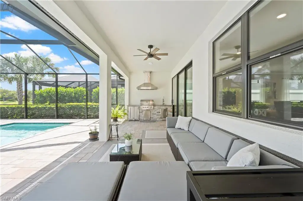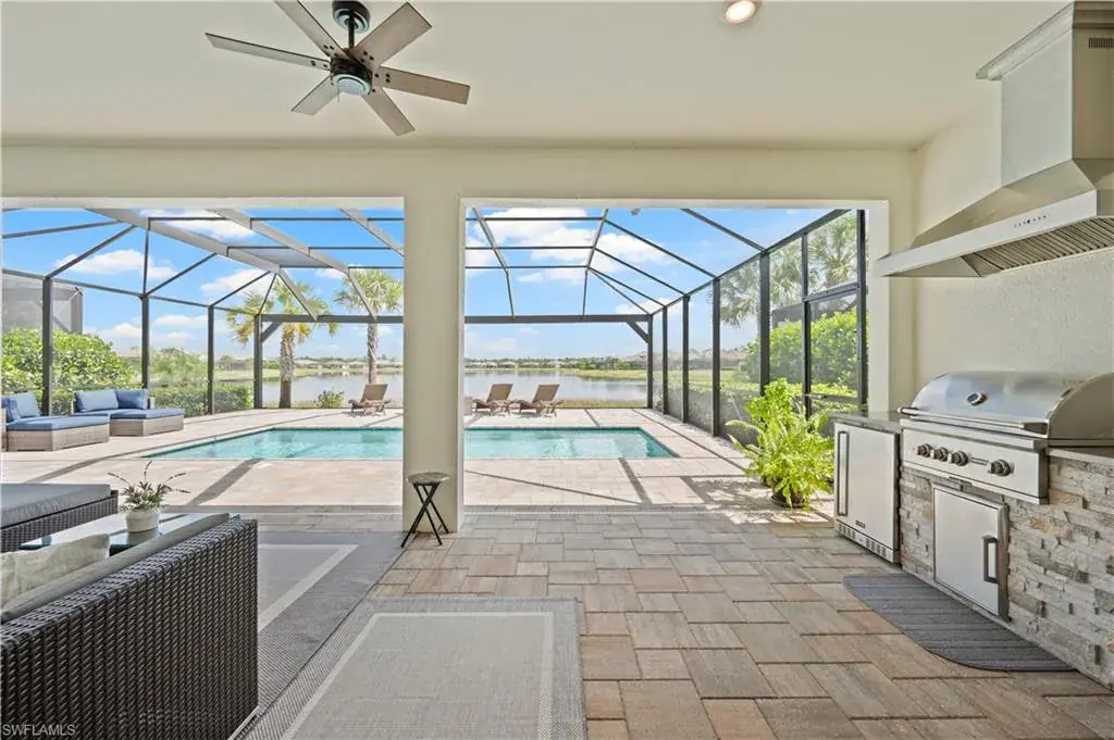 Wow! This beautifully designed and meticulously maintained home checks all the right boxes. Featuring the highly desirable Summerwood floor plan with Great Room extension, it is perfect for entertaining or simply relaxing at home after a nice day out in beautiful Naples, FL. The kitchen features upgraded appliances, quartz countertops, an oversized island and walk-in pantry. The two guest bedrooms provide enough room for guests. The office/den can easily serve as a 4th bedroom if desired. Other interior features include high-grade porcelain tile throughout, a laundry/utility room with plenty of storage and natural gas for cooking, heated water and clothes drying. Exterior upgrades abound with a one-of-a-kind extended lanai with custom pavers and a built-in outdoor kitchen. There is plenty of space for outdoor gatherings, cookouts, an afternoon nap, a dip in the pool or just taking in some Florida sunshine. Looking through the huge portrait “no-see” lanai screen is one of the very best long water views in the entire community. The view is simply gorgeous, inspiring “wows” from all. The driveway and side walkway are extended. There is over $100k in upgrades to this magnificent home. Just pack your bags and head on down to enjoy our very special slice of tropical paradise. Worried about maintenance and insurance costs, and/or storms? Newer construction (2021) negates a large future roof replacement cost for some time. And a newer A/C system should provide many more years of solid service. Hurricane impact doors and windows are throughout providing for great energy efficiency and home protection. Also, the lot of this property is elevated. It is not in a mandatory flood insurance zone. And there is a whole home gas generator too should the need ever arise. All aforementioned should assist in obtaining lower insurance premiums and keep maintenance costs down. This home offers easy peasy and worry-free living by any measure. To top it all off, this sensational home resides in the highly prized community of Winding Cypress. An onsite restaurant, modern fitness center, community pool and a full calendar of social gatherings with some of the best Naples residents around are a nice walk, bike or golf cart ride away. Also, located conveniently between downtown Naples and Marco Island, opportunities to visit some of our finest beaches, shopping and dining locations are just minutes away. Great home. (Check.) Great view. (Check.) Great community. (Check.) Great location. (Check.) This property checks all the right boxes for the time of your life in beautiful Naples, FL.