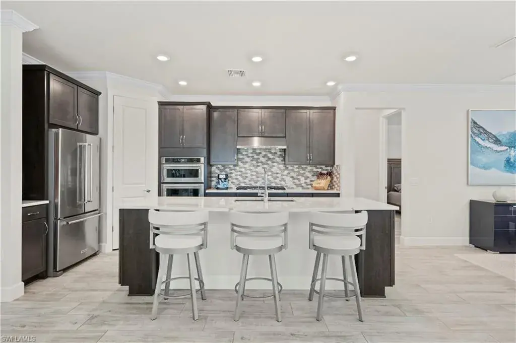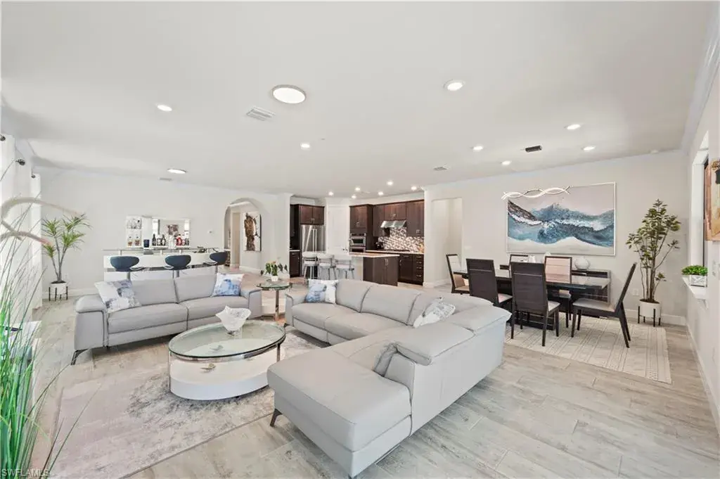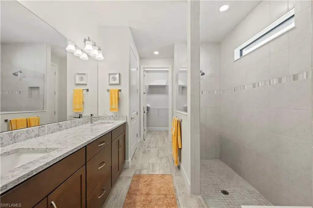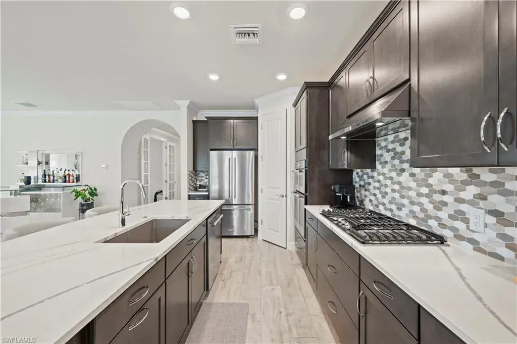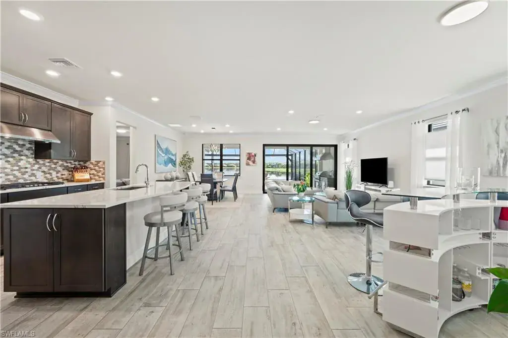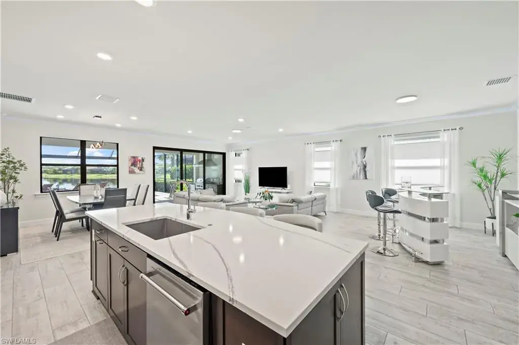 Wow! This beautifully designed and meticulously maintained home checks all the right boxes. Featuring the highly desirable Summerwood floor plan with Great Room extension, it is perfect for entertaining or simply relaxing at home after a nice day out in beautiful Naples, FL. The kitchen features upgraded appliances, quartz countertops, an oversized island and walk-in pantry. The two guest bedrooms provide enough room for guests. The office/den can easily serve as a 4th bedroom if desired. Other interior features include high-grade porcelain tile throughout, a laundry/utility room with plenty of storage and natural gas for cooking, heated water and clothes drying. Exterior upgrades abound with a one-of-a-kind extended lanai with custom pavers and a built-in outdoor kitchen. There is plenty of space for outdoor gatherings, cookouts, an afternoon nap, a dip in the pool or just taking in some Florida sunshine. Looking through the huge portrait “no-see” lanai screen is one of the very best long water views in the entire community. The view is simply gorgeous, inspiring “wows” from all. The driveway and side walkway are extended. There is over $100k in upgrades to this magnificent home. Just pack your bags and head on down to enjoy our very special slice of tropical paradise. Worried about maintenance and insurance costs, and/or storms? Newer construction (2021) negates a large future roof replacement cost for some time. And a newer A/C system should provide many more years of solid service. Hurricane impact doors and windows are throughout providing for great energy efficiency and home protection. Also, the lot of this property is elevated. It is not in a mandatory flood insurance zone. And there is a whole home gas generator too should the need ever arise. All aforementioned should assist in obtaining lower insurance premiums and keep maintenance costs down. This home offers easy peasy and worry-free living by any measure. To top it all off, this sensational home resides in the highly prized community of Winding Cypress. An onsite restaurant, modern fitness center, community pool and a full calendar of social gatherings with some of the best Naples residents around are a nice walk, bike or golf cart ride away. Also, located conveniently between downtown Naples and Marco Island, opportunities to visit some of our finest beaches, shopping and dining locations are just minutes away. Great home. (Check.) Great view. (Check.) Great community. (Check.) Great location. (Check.) This property checks all the right boxes for the time of your life in beautiful Naples, FL.