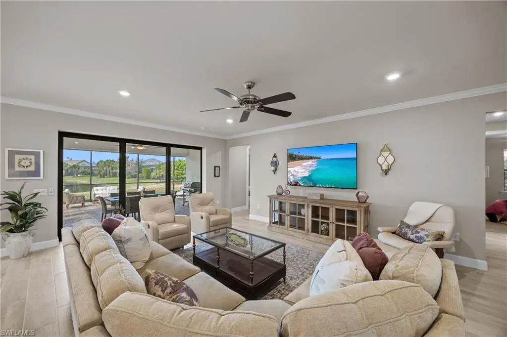 Welcome to a beautiful Pinnacle Model in the desirable, amenity rich community of Winding Cypress. This waterfront home. Original owner care is apparent throughout. Builder and owner upgrades include; chef’s kitchen with upgraded appliances, sink & faucet, soft close pull out cabinets including under-side lighting, custom quartz countertops, custom plank tile flooring, hurricane impact windows, slider, and entry door, upgraded & expansive lanai outdoor living area with Storm Smart Kevlar screen enclosure & ready for you to design your own outdoor kitchen.