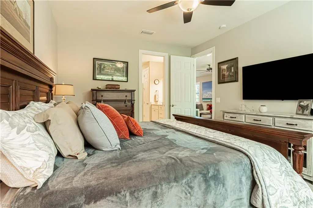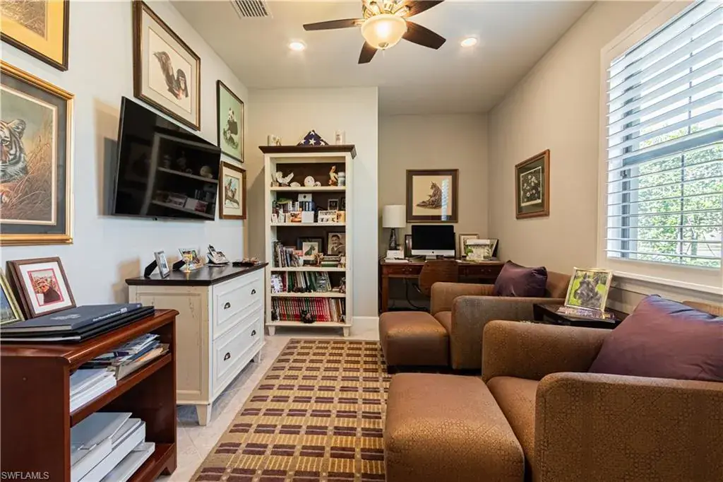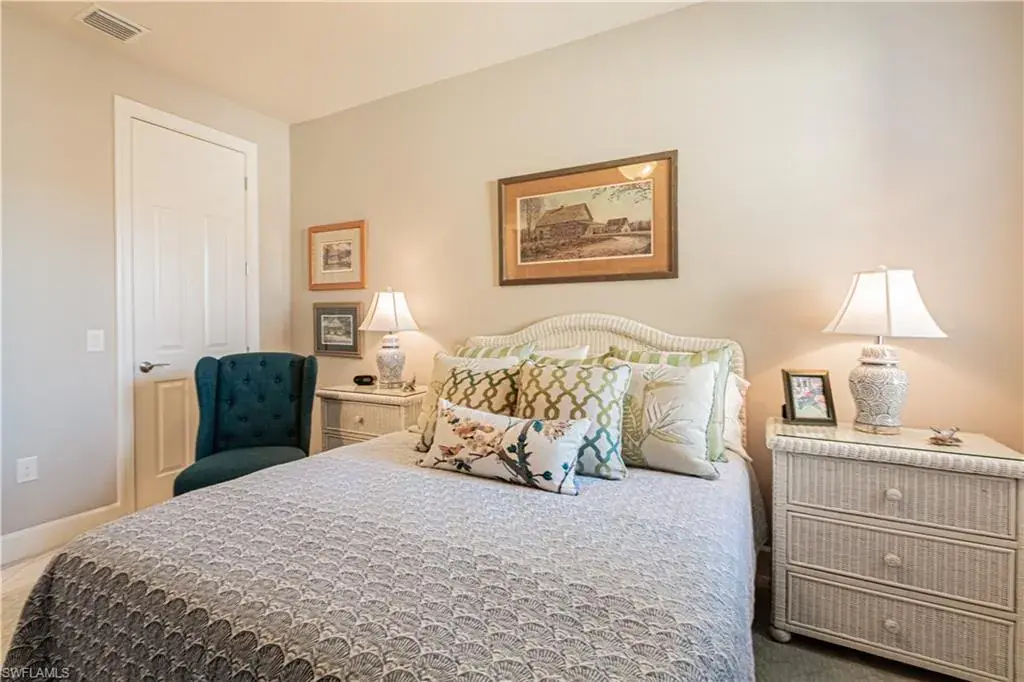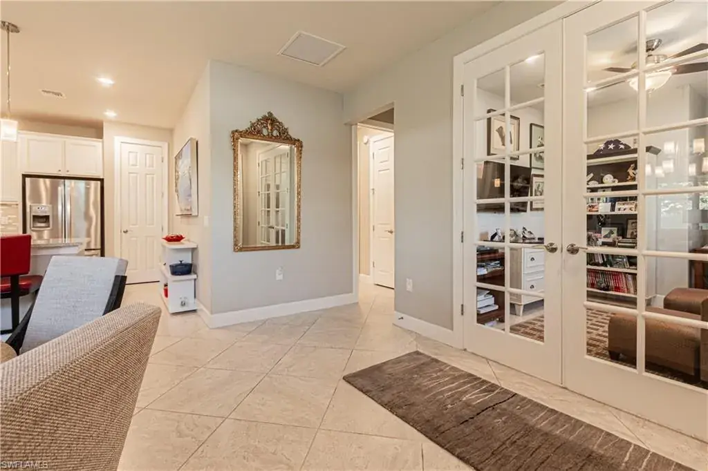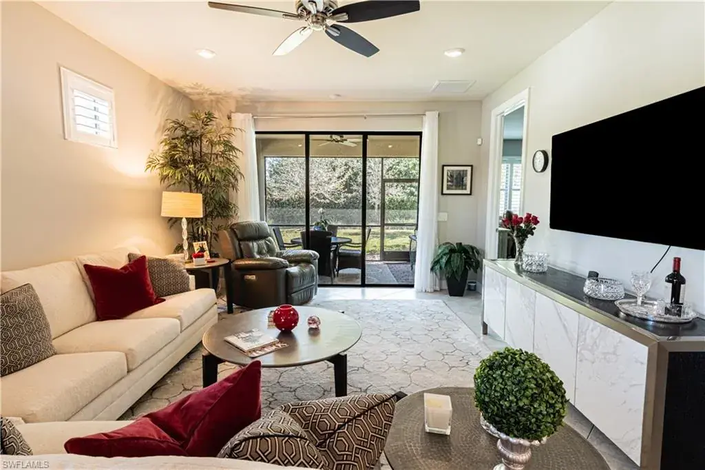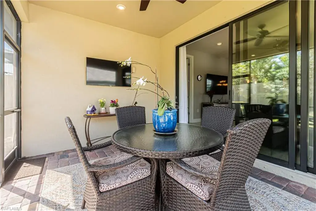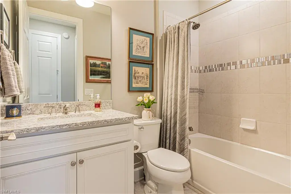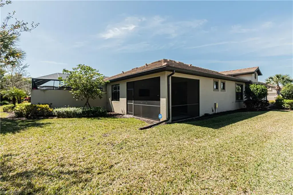 This beautiful Winding Cypress Serenity Villa home offers 1,554 sq. ft. of comfort with 2 bedroom plus den, 2 bathrooms, screened lanai, and a 2-car garage. It features multiple quality upgrades including stainless appliances with both gas and electric connectivity for the stove, 22″ porcelain tile on the diagonal throughout, plantation shutters, Quartz countertops in kitchen and bathrooms, den with French doors, and much more. The full list of upgrades is in supplements. Located near downtown Naples and Marco Island, the community features a clubhouse with a resort style pool, spa, state of the art fitness room, restaurant, tennis, bocce and pickleball. Shopping and restaurants are nearby. The 800+ acre preserve with a boardwalk adds to the outdoor appeal. Ideal for those seeking a stylish home in a prime location.