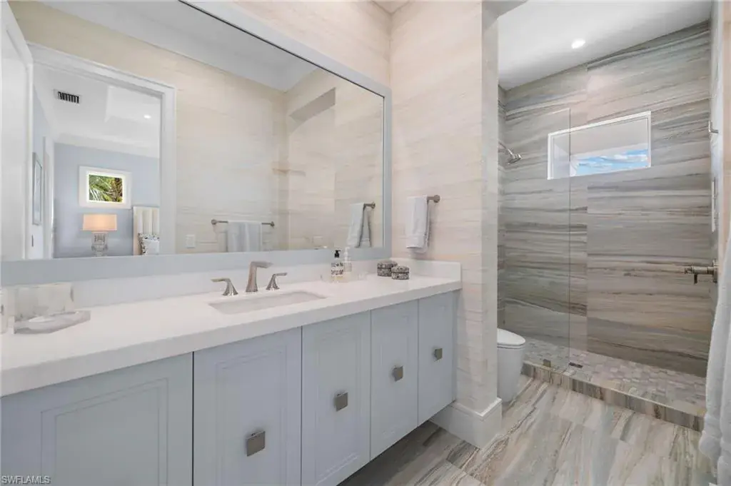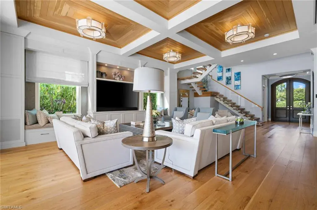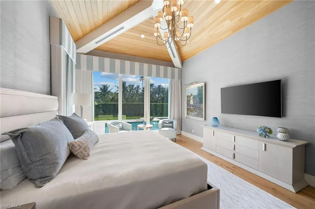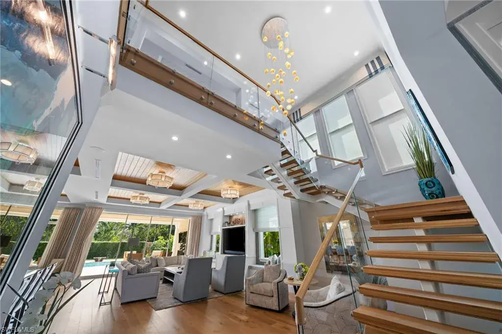 Significant price reduction — outstanding value and an opportunity not to miss! Experience the pinnacle of luxury living in this breathtaking custom estate, built by Seagate Development, offers unparalleled craftsmanship, an array of premium upgrades, and complete privacy on an oversized, south-facing lot with stunning lake views. Upon entry, you’re greeted by a marble inlay foyer and a magnificent 10-foot solid front door. The dramatic floating staircase with glass railings and large wood treads serves as a show-stopping centerpiece. Impeccable wood floors flow throughout the home, accentuated by intricate ceiling details, plantation shutters, Bahama shutters, and elegant crown molding. The chef’s kitchen is a masterpiece, featuring a Wolf 48” gas dual oven, Sub-Zero refrigerator and freezer, Sub-Zero wine fridge, two Bosch dishwashers, and a customized oversized walk-in pantry. The adjacent dining and living spaces offer seamless flow for entertaining, while hurricane-impact windows and remote-controlled bug screens and hurricane shutters provide comfort and peace of mind. The main-level primary suite is a retreat unto itself, boasting three oversized walk-in closets, including one with custom storage designed for ultimate organization; and a spa-like bathroom with two private commode rooms – each equipped with a bidet; a soaking tub centerpiece, a large frameless glass shower with multiple heads, and luxurious marble inlay floors. A den/fourth bedroom and a beautifully appointed half bath complete the first level. Upstairs, discover a large loft, family room/theater with a U-Line under-mount paneled refrigerator, and two VIP suites. Each suite features spacious walk-in closets, beautifully appointed en-suite bathrooms, and one includes a private balcony with panoramic lake views. Step outside to your private oasis: a custom oversized pool with spa, dual waterfall bowl features, and a lushly landscaped yard with a section of artificial turf. The expansive outdoor living area is an entertainer’s dream, complete with an amazing outdoor kitchen, a sleek linear fireplace, a flat-screen TV, and plenty of space to gather and enjoy the serene surroundings. Complete privacy is ensured, with no neighboring homes in view. For added peace of mind, a 500-gallon buried propane tank powers a whole home generator, ensuring uninterrupted comfort and functionality during any conditions. This home features a state-of-the-art Control4 smart home system, Somfy remote-controlled blackout shades, and ample storage with a dedicated AV rack. A spacious, conditioned three-car attached garage provides ample storage and year-round comfort for your vehicles. Built to the highest standards, it offers both sophistication and comfort. Situated in the exclusive Windward Isle community, this custom estate is truly one of a kind positioned in the perfect central Naples location. Schedule your private tour today to experience the luxury and elegance of 6892 Leeward Way.