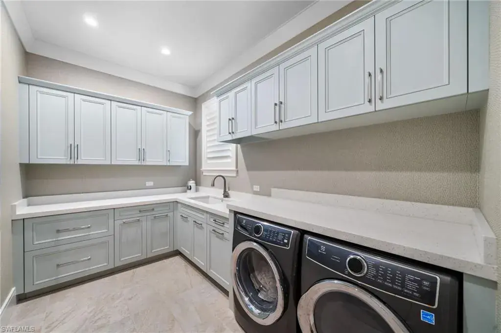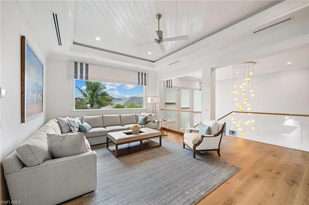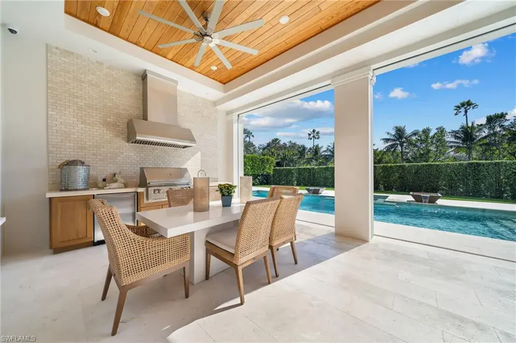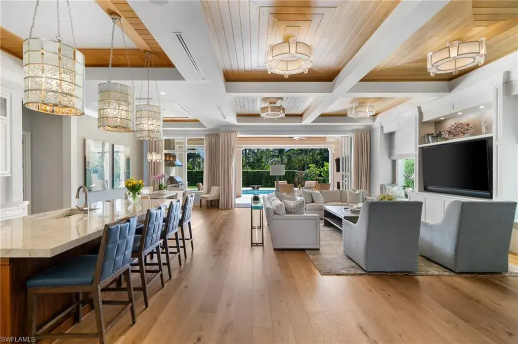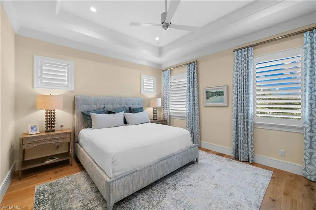 Significant price reduction — outstanding value and an opportunity not to miss! Experience the pinnacle of luxury living in this breathtaking custom estate, built by Seagate Development, offers unparalleled craftsmanship, an array of premium upgrades, and complete privacy on an oversized, south-facing lot with stunning lake views. Upon entry, you’re greeted by a marble inlay foyer and a magnificent 10-foot solid front door. The dramatic floating staircase with glass railings and large wood treads serves as a show-stopping centerpiece. Impeccable wood floors flow throughout the home, accentuated by intricate ceiling details, plantation shutters, Bahama shutters, and elegant crown molding. The chef’s kitchen is a masterpiece, featuring a Wolf 48” gas dual oven, Sub-Zero refrigerator and freezer, Sub-Zero wine fridge, two Bosch dishwashers, and a customized oversized walk-in pantry. The adjacent dining and living spaces offer seamless flow for entertaining, while hurricane-impact windows and remote-controlled bug screens and hurricane shutters provide comfort and peace of mind. The main-level primary suite is a retreat unto itself, boasting three oversized walk-in closets, including one with custom storage designed for ultimate organization; and a spa-like bathroom with two private commode rooms – each equipped with a bidet; a soaking tub centerpiece, a large frameless glass shower with multiple heads, and luxurious marble inlay floors. A den/fourth bedroom and a beautifully appointed half bath complete the first level. Upstairs, discover a large loft, family room/theater with a U-Line under-mount paneled refrigerator, and two VIP suites. Each suite features spacious walk-in closets, beautifully appointed en-suite bathrooms, and one includes a private balcony with panoramic lake views. Step outside to your private oasis: a custom oversized pool with spa, dual waterfall bowl features, and a lushly landscaped yard with a section of artificial turf. The expansive outdoor living area is an entertainer’s dream, complete with an amazing outdoor kitchen, a sleek linear fireplace, a flat-screen TV, and plenty of space to gather and enjoy the serene surroundings. Complete privacy is ensured, with no neighboring homes in view. For added peace of mind, a 500-gallon buried propane tank powers a whole home generator, ensuring uninterrupted comfort and functionality during any conditions. This home features a state-of-the-art Control4 smart home system, Somfy remote-controlled blackout shades, and ample storage with a dedicated AV rack. A spacious, conditioned three-car attached garage provides ample storage and year-round comfort for your vehicles. Built to the highest standards, it offers both sophistication and comfort. Situated in the exclusive Windward Isle community, this custom estate is truly one of a kind positioned in the perfect central Naples location. Schedule your private tour today to experience the luxury and elegance of 6892 Leeward Way.