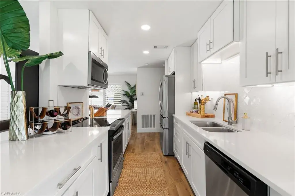 Rarely available and impeccably updated, this turnkey residence offers a refined living experience in one of Park Shore’s desired boutique communities. Thoughtfully renovated with high-end finishes throughout, the open kitchen flows seamlessly into the main living area while maintaining subtle separation for added charm and functionality. Enjoy breathtaking sunset skies from the expansive screened balcony, which overlooks lush landscaping and the sparkling community pool. Featuring two spacious bedrooms with en suites, this condominium blends comfort and privacy with a relaxed, coastal elegance. Additional highlights include covered parking, ample storage and proximity to Fresh Market, Starbucks, Venetian Village restaurants and shopping. Offered fully furnished, this turnkey property is move-in ready. Residents are also eligible for membership to the private, members-only Park Shore Beach Club. Just minutes to Old Naples and the new Four Seasons Resort, this is a rare opportunity in an exceptional Naples location.