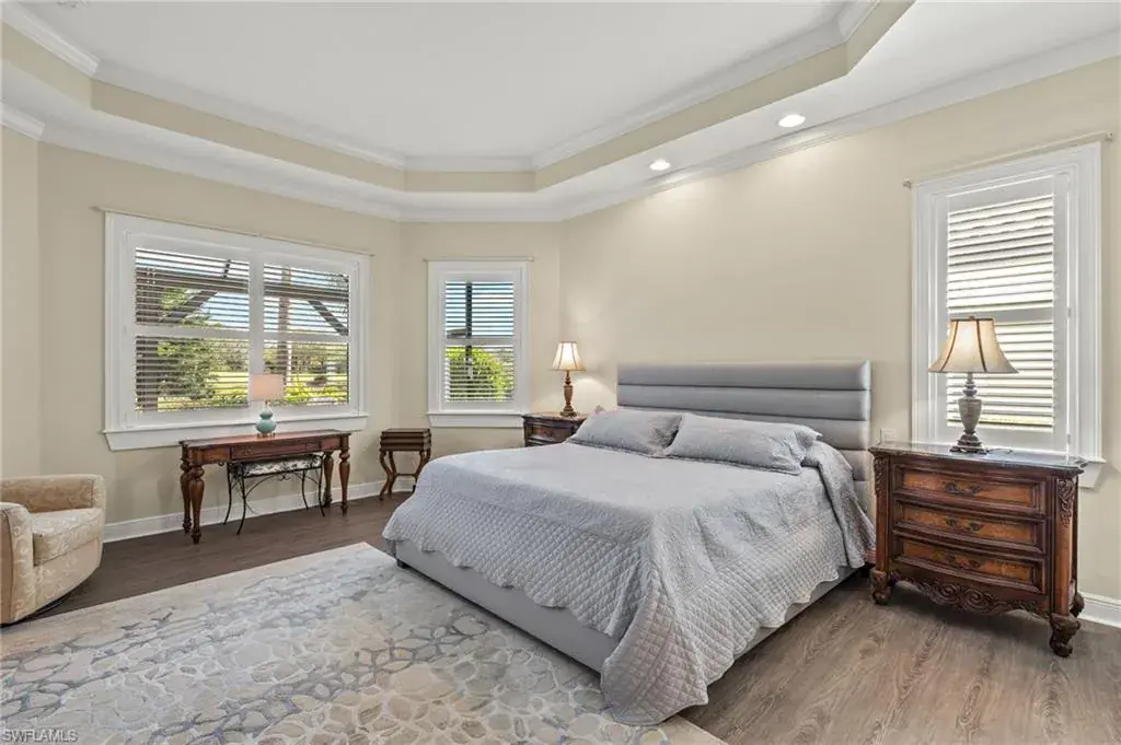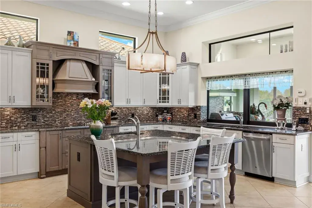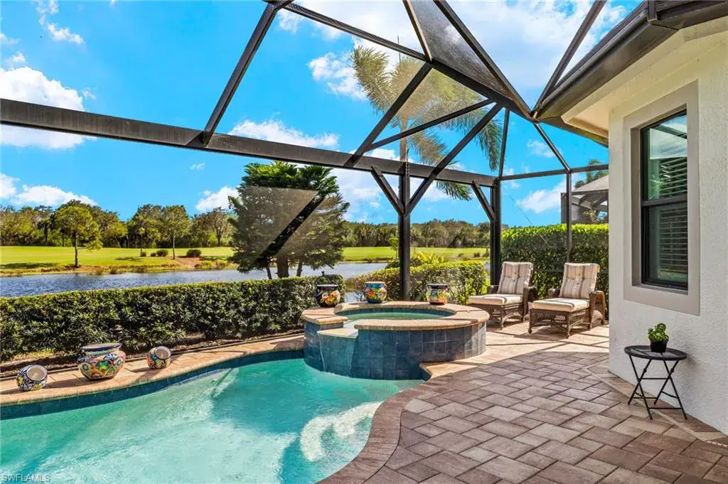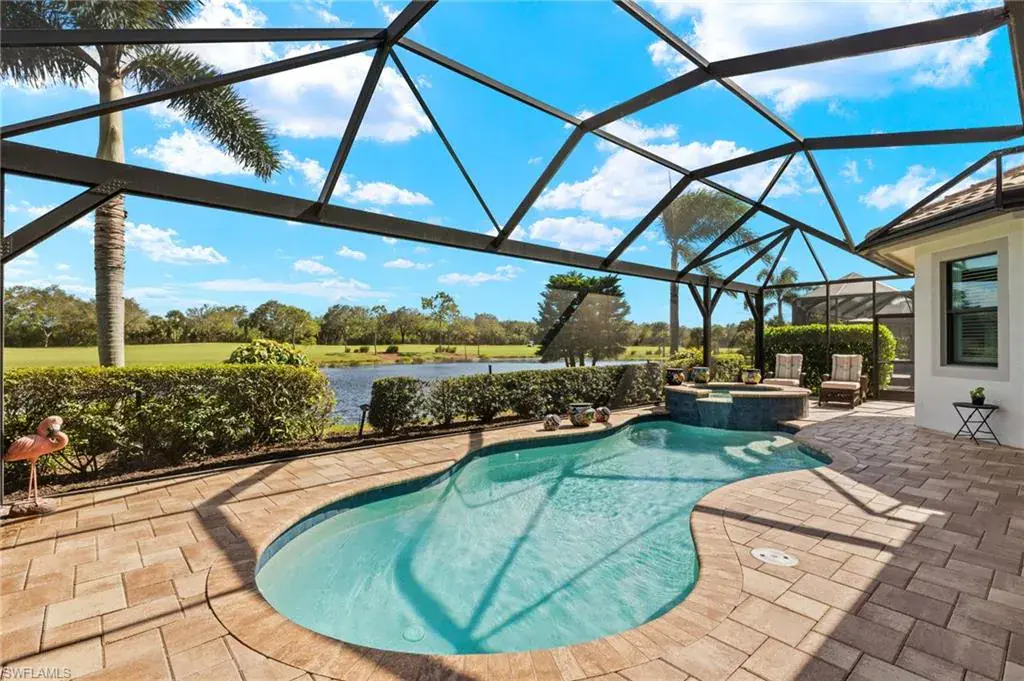 Step outside to discover an outdoor oasis! The screened-in patio is an ideal setting for alfresco dining or leisurely afternoons, while the pool and spa offer a refreshing escape with breathtaking lake views as your backdrop.