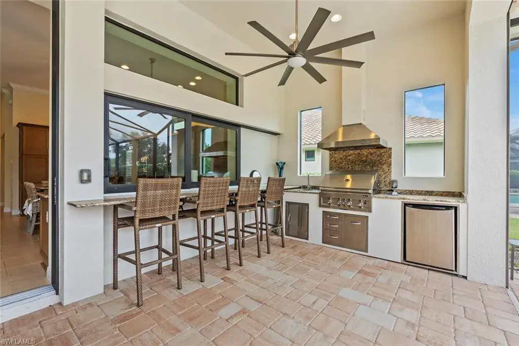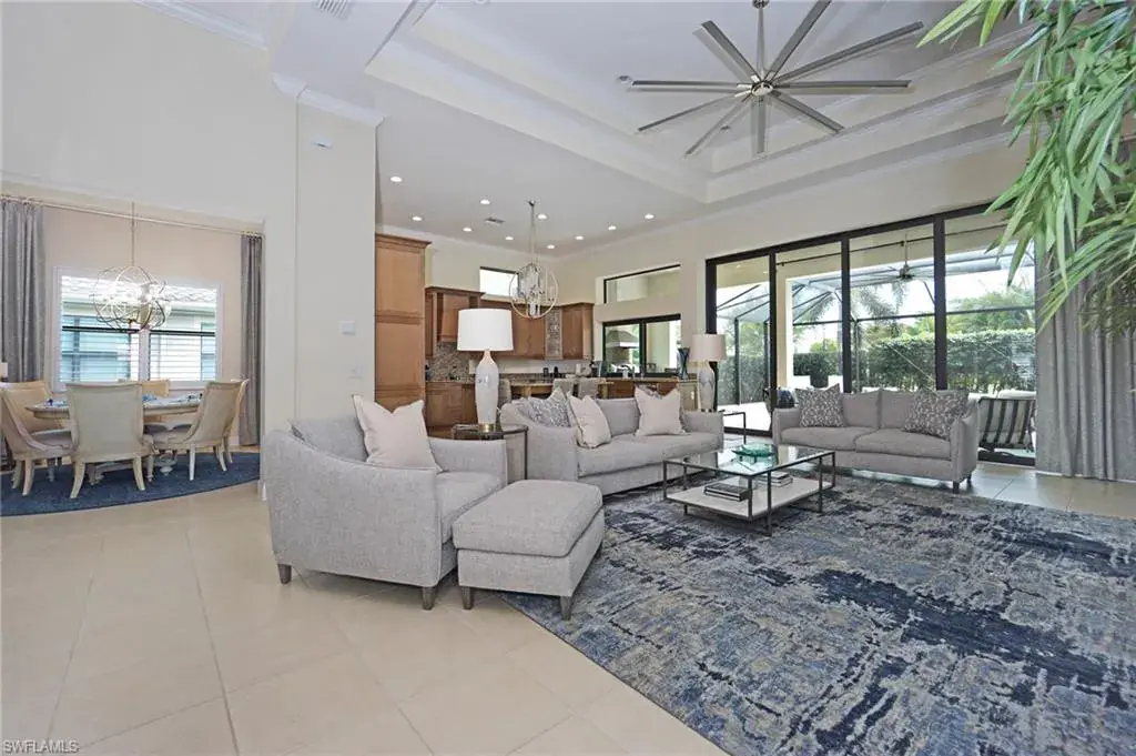 Full Golf Membership Available Immediately! Enjoy privacy and a serene park like setting on this spacious oversized lot. This fantastic Prestwick Grand pool/spa home offers a spacious open floor plan and spectacular outdoor living space. The thoughtfully designed great room floor plan includes 3 bedrooms + den, 3 Full bathrooms and an air conditioned garage. The meticulously maintained home has many upgrades including; electric impact screens on the lanai, salt water pool and spa, solar panels for the pool, air conditioned garage, brand new dishwasher, new pool cage, new pool heater, new interior and exterior lighting and fans, and much more. Twin Eagles is a vibrant community which offers 2 Championship Golf Courses, Tennis, Pickleball, Bocce, Resort Pool with Tiki Bar and a state of the art Fitness Center.