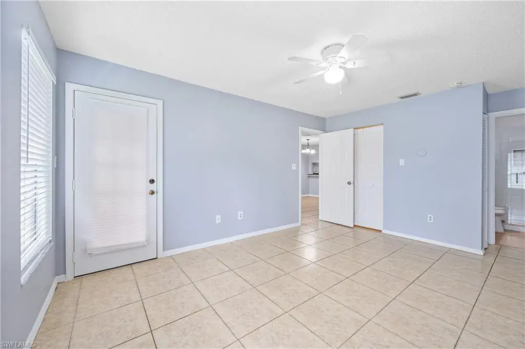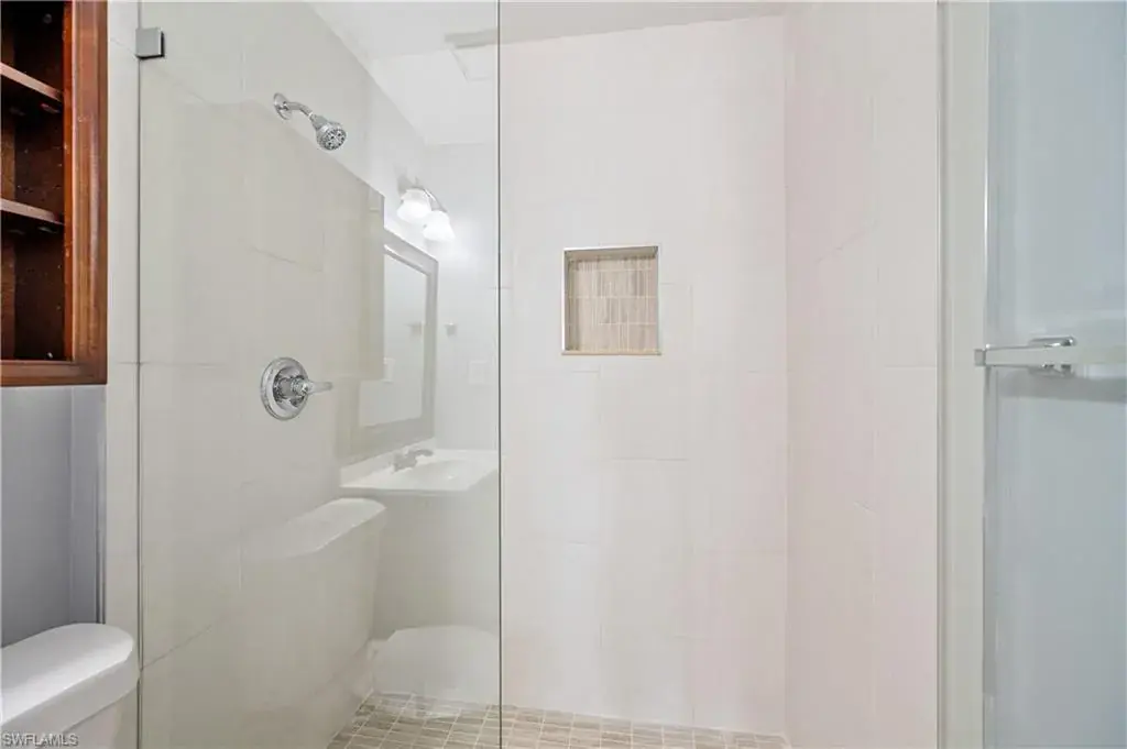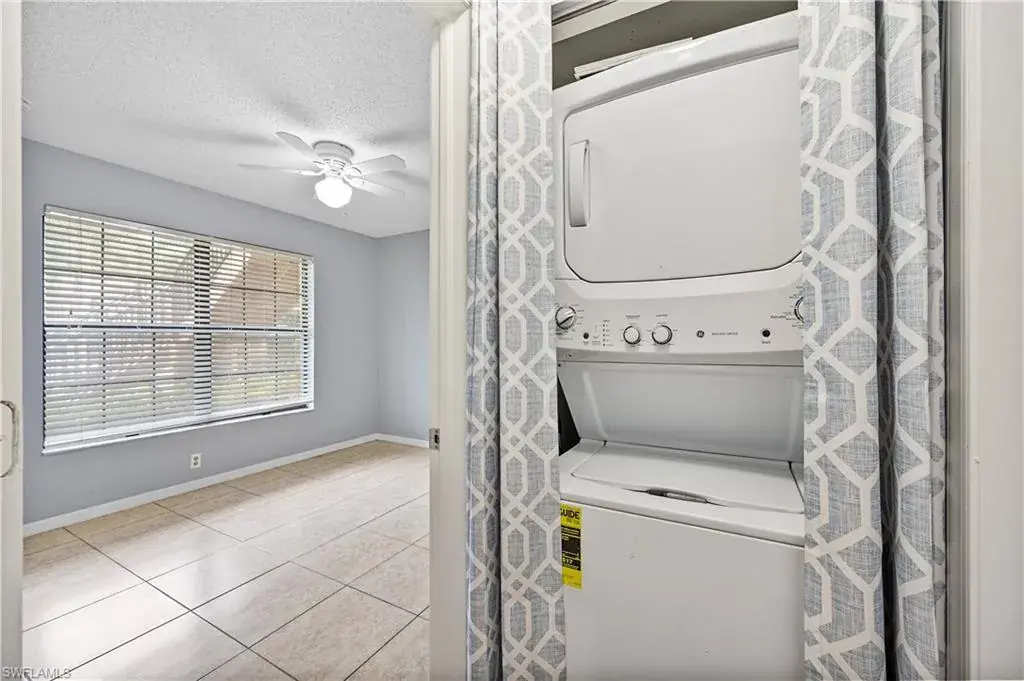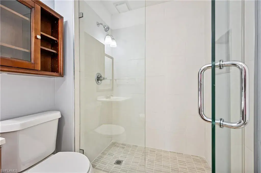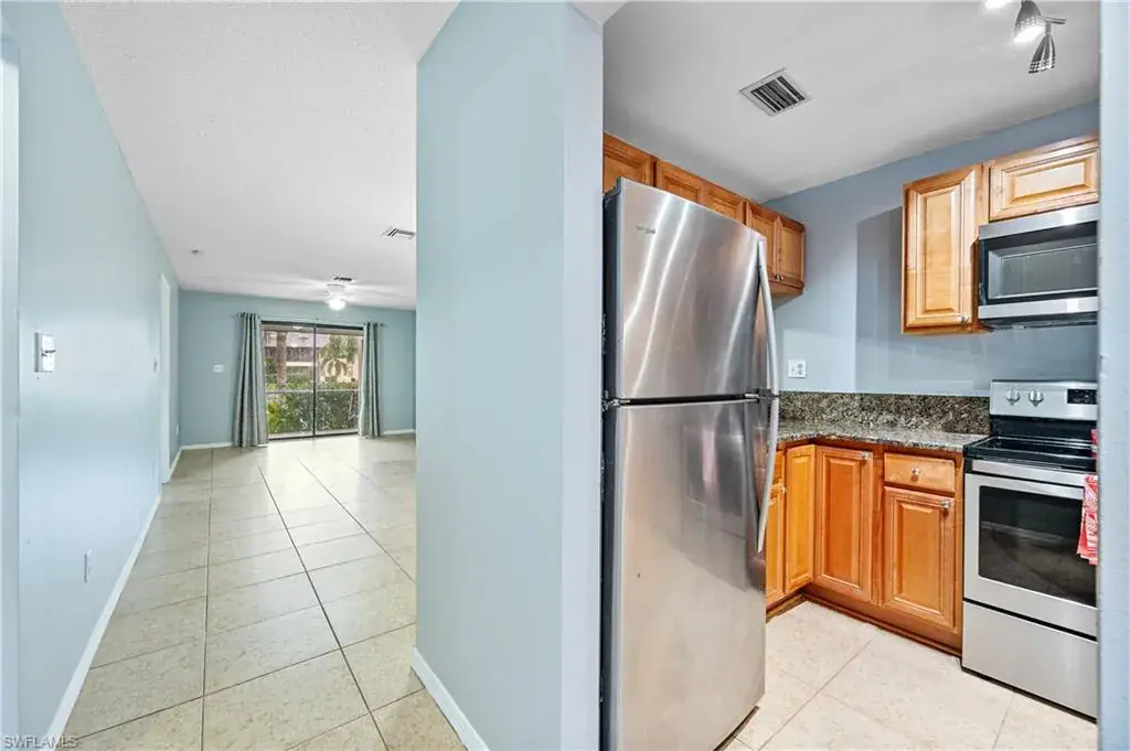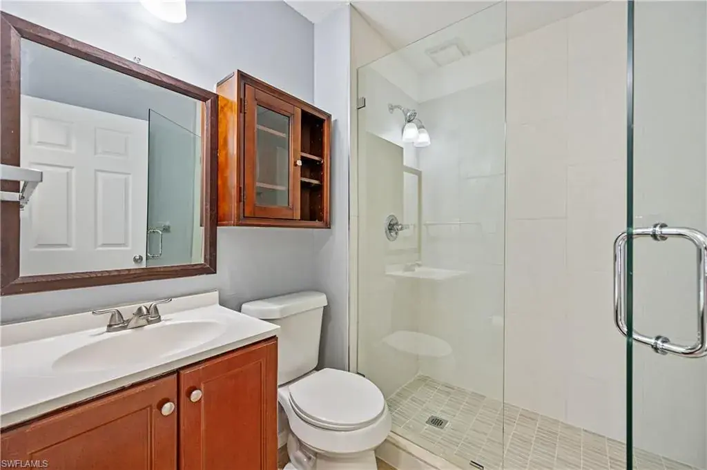 Welcome to Woodgate at Naples! This beautifully updated ground-level condo offers 2 bedrooms and 2 fully remodeled bathrooms featuring modern finishes and seamless glass shower doors. The home has been freshly painted and showcases tile flooring throughout for easy maintenance and a clean, cohesive look. The updated kitchen is equipped with granite countertops, wood cabinetry, stainless steel appliances, and a refrigerator with an ice maker, while a convenient breakfast bar provides extra seating and a great place to gather. Additional highlights include new interior doors, a washer and dryer that are only three years old, and a private screened lanai overlooking the tranquil lake—perfect for relaxing and enjoying the view. This residence also comes with one reserved parking space for added convenience.