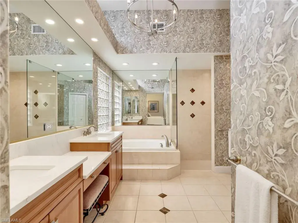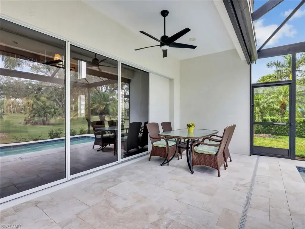 This masterpiece of elegance and comfort, perched on the 9th hole of Kensington, is move-in ready and designed to maximize its 3,482 sq ft of well-appointed living space. Brand-new updates further elevate this residence with the addition of a sparkling new pool and panoramic picture-frame cage, transforming the lanai into a resort-style retreat that perfectly frames sweeping views of the 9th fairway. Soaring 18-foot ceilings and expansive windows fill the home with natural light, illuminating the exquisite European Oak hardwood flooring throughout. Designed for both grand entertaining and effortless everyday living, this 4-bed + den, 4-bath Arthur Rutenberg residence features an expansive great room with a wet bar and cozy wood-burning fireplace, ideal for hosting guests. The formal dining room and eat-in gourmet kitchen provide multiple dining options, while the generous-sized loft offers additional space for relaxation or recreation. The renovated kitchen is a showstopper, boasting custom cabinetry, high-end appliances, and a spacious center island perfect for entertaining. The dedicated office/flex space impresses with custom built-in shelving and its own bath. The sprawling primary suite on the ground floor is a serene retreat, offering breathtaking golf course views, while the remodeled en-suite bath features a Jacuzzi tub, quartz double vanity, and a walk-in shower. Upstairs, the VIP bedroom with an en-suite bath and private balcony offers stunning golf course views—a perfect spot for sunbathing. Two additional spacious bedrooms and another full bathroom with towel warmers complete the second floor. A versatile den/5th bedroom on the ground floor is ideal for a home office, an au pair, or multigenerational living. Additional highlights include an oversized 3-car garage, hurricane shutters on all windows and doors, and recent upgrades, such as a new roof (2021), high- efficiency A/C, new water heater, and freshly painted interior and exterior. The optional Kensington Golf & Country Club offers an 18-hole championship golf course, a restaurant, a cutting-edge fitness center, tennis & pickleball courts, a new resort-style pool & more. This home offers an exceptional living experience in one of Naples’ most desirable communities, just minutes from vibrant entertainment, shopping, and dining at Mercato and Waterside, and pristine Gulf beaches!