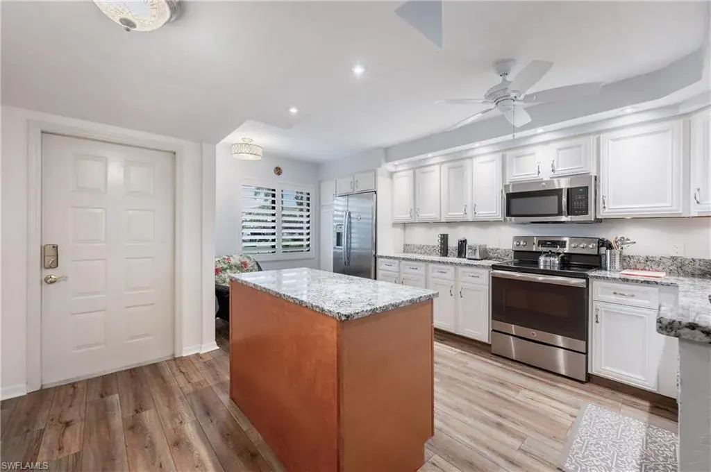 WOW, ready for move in beautiful first floor condo over looking the lake and golf course,2 bedroom 2 bath updated with open kitchen and enjoyable view. Featuring maintenance free flooring through out.Glassed in lanai over looking water and golf course and 17th tee and green. New construction of club house ready for opening in spring of 2025