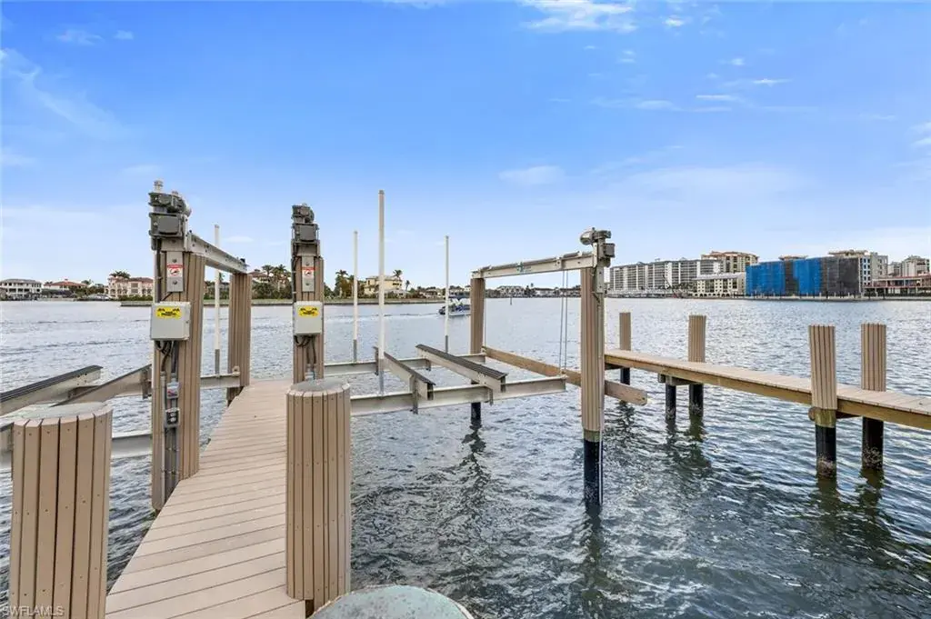 PRIVATE DEEDED beach access! BOAT SLIP equipped with a 10,000 lb lift. Exclusive seven-unit boutique condominium, Sausalito of Naples, situated directly on Vanderbilt Bay. Enjoy breathtaking views from private balconies on each level overlooking both the bay and the Gulf of America. This newly renovated, fully furnished residence spans two levels, featuring three spacious bedrooms and three full bathrooms. The thoughtful layout includes a guest bedroom on the main floor and two additional bedrooms upstairs, providing a townhome-like living experience. Additional convenience includes one assigned parking space. Located in the heart of Vanderbilt Beach, this property is in close proximity to premier dining and shopping destinations such as the The Ritz-Carlton, Pavilion Shopping Center and Mercato, offering a variety of upscale restaurants, boutiques, and entertainment options. Experience the epitome of Naples living in this exceptional property, where luxury meets coastal charm.