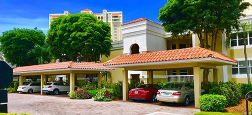 Two low-rise condo buildings featuring 24 condos were completed in 1994. a brick paver parking lot and carport parking are available to residents. First-floor residences offer a walk-out towards the pool.