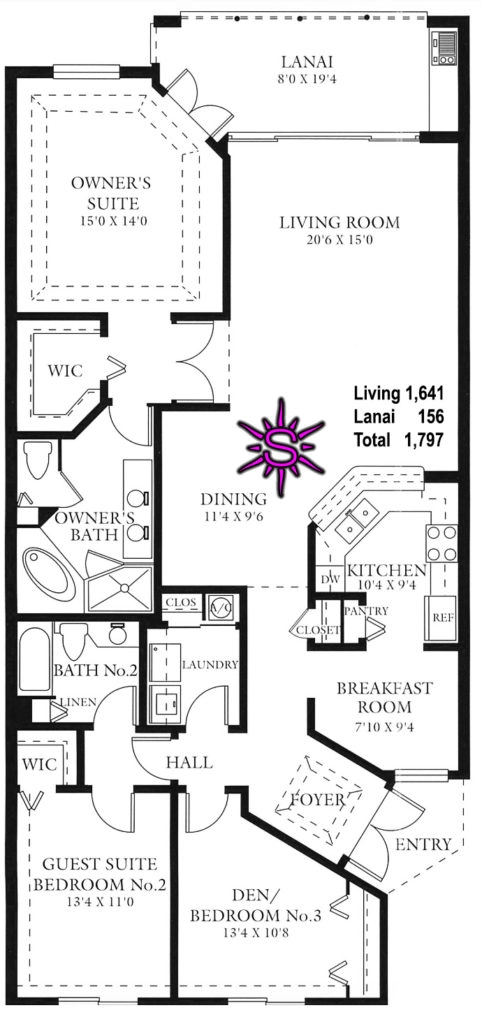 Located below are the floor plans for Pebble Creek at Pelican Bay. The most common floor plan change alteration typically involves enclosing the screened lanai to gain a larger climate-controlled living area. Third-floor units in the low-rise condominiums offer vaulted ceilings. Some residents are choosing to open their kitchens a little more allowing more natural light to flow through the unit. Other residents are choosing to remove bathtubs and install full-sized showers.